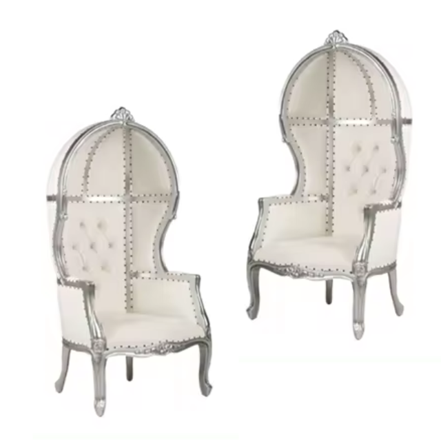 เก้าอี้บัลลังก์สูงหลังพระราชาเก้าอี้หรูหราเก้าอี้เจ้าสาวและเจ้าบ่าวสีขาวสำหรับงานแต่งงานและการใช้ในโรงแรม