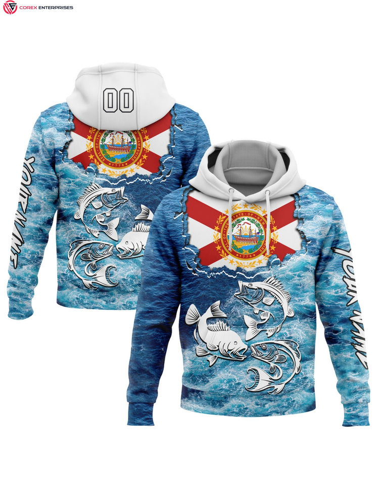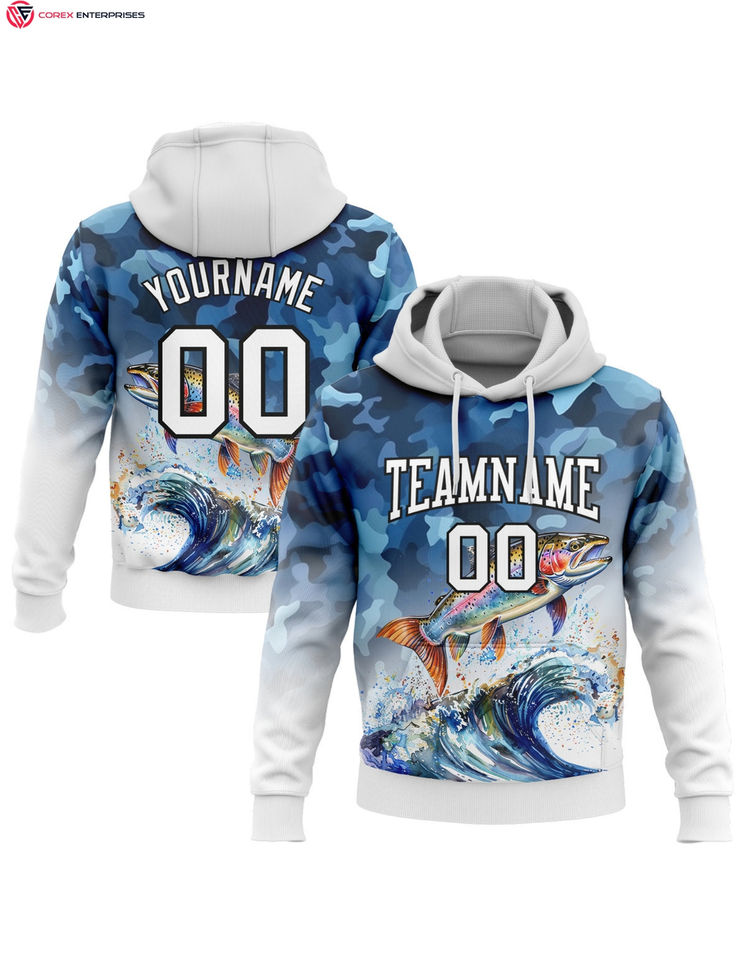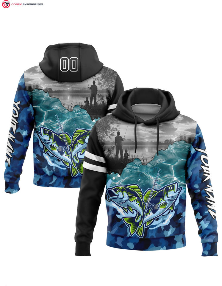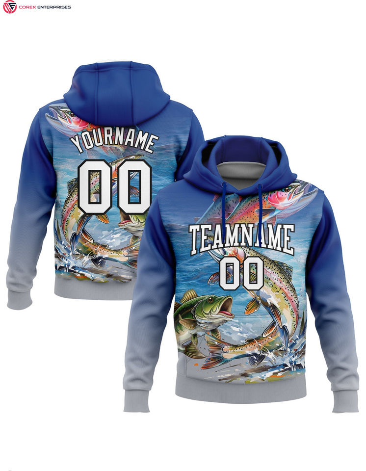 เสื้อกันหนาวแบบสวมหัวมีฮู้ด3D เบสใหญ่สีฟ้าเสื้อกีฬาตกปลาเย็บกำหนดเอง100% โลโก้ด้านหน้าผ้าฝ้าย