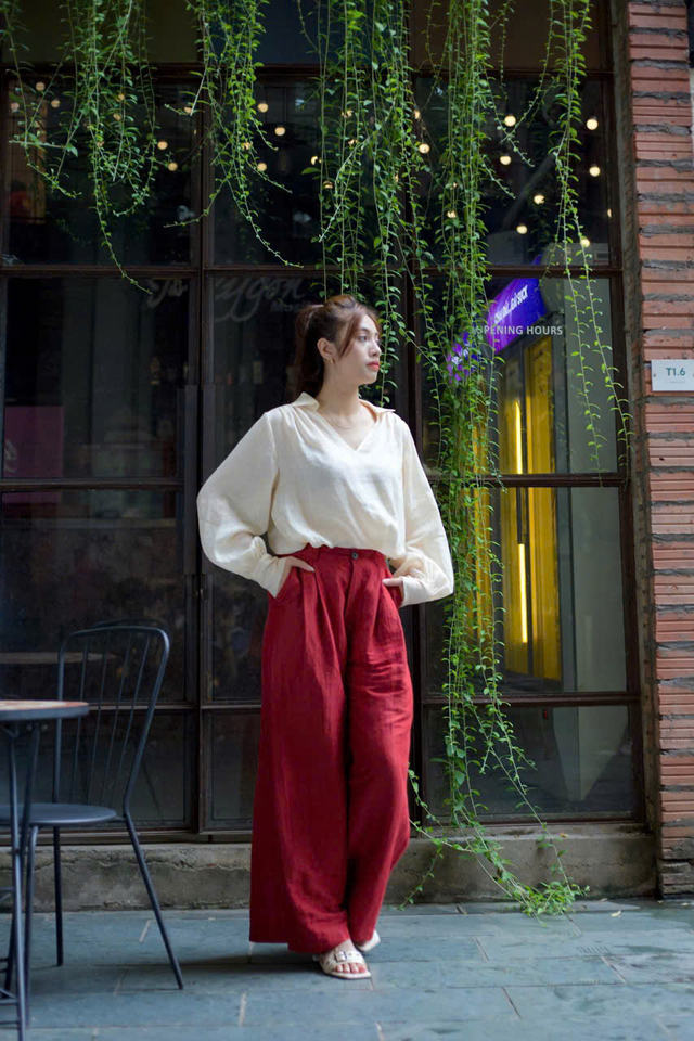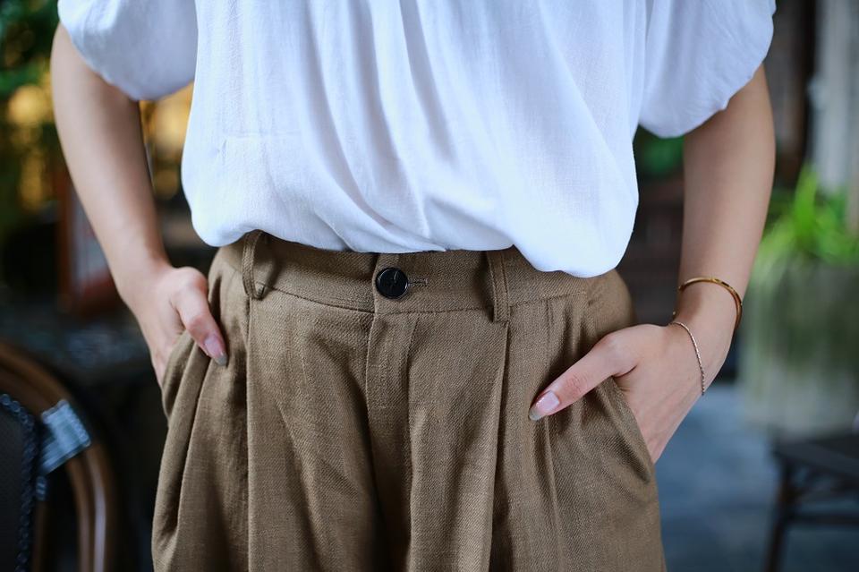 Thuy เสื้อเบลาส์ผ้าลินินผู้หญิงหรูหราแขนสั้นสไตล์ผ่อนคลายพร้อมกางเกงคาร์โก้เทคนิคการซัก