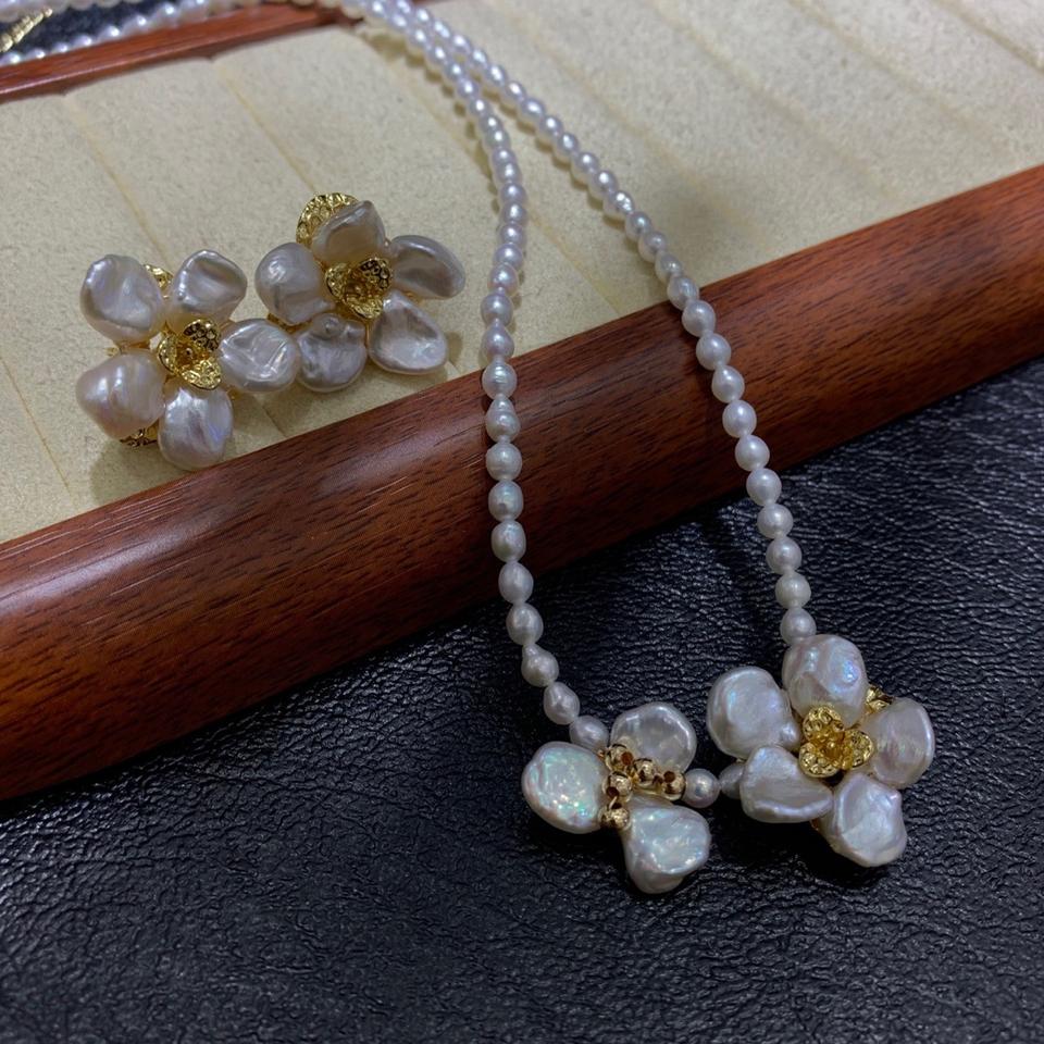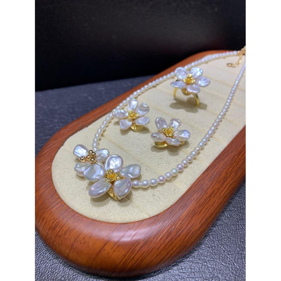 เทียนซุ่ยรัน ชุดเครื่องประดับมุกบาโรก สร้อยคอ ต่างหู แหวน สไตล์ผู้หญิง ชุดสามชิ้น