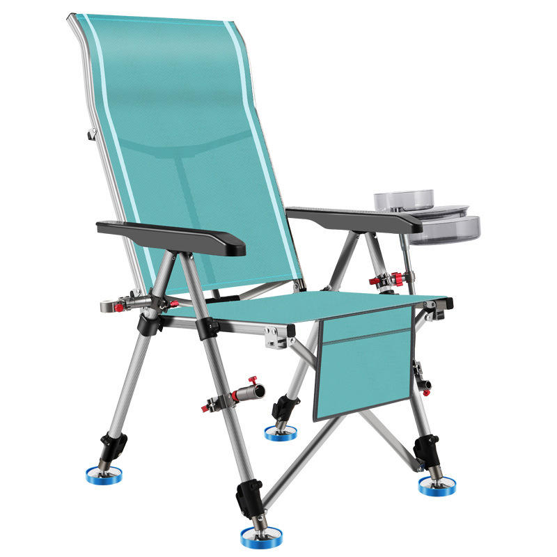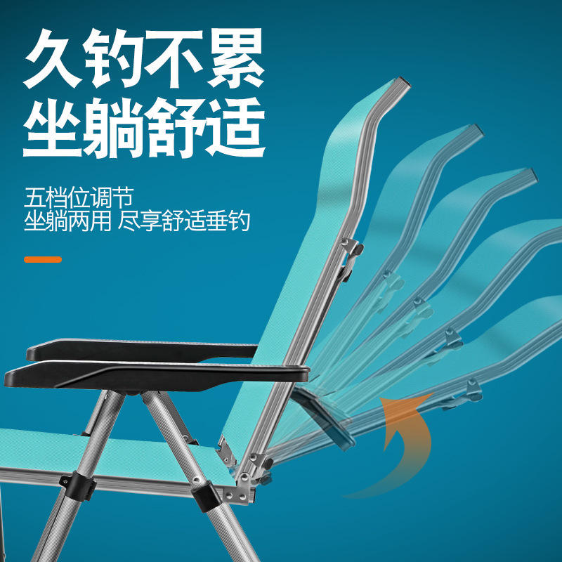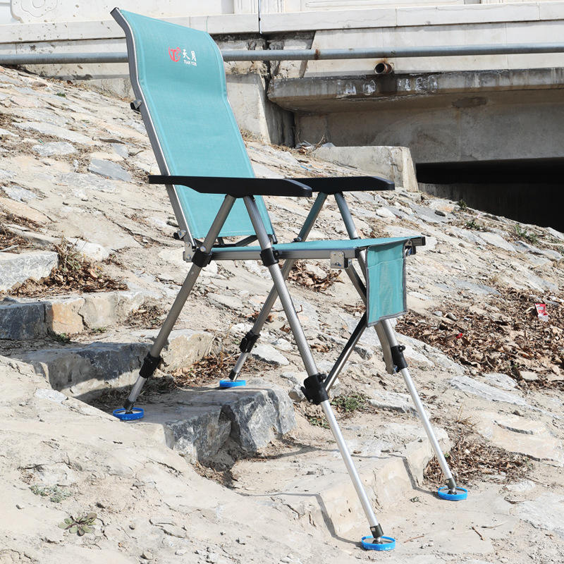 เก้าอี้ตกปลาปรับระดับได้ Tian Yue ทำจากอลูมิเนียมอัลลอย พับได้ ใช้กลางแจ้ง พร้อมที่วางแก้ว