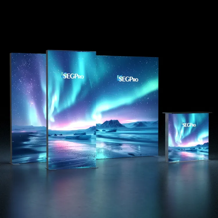 TIANLANG กล่องไฟ LED แสดงนิทรรศการแบบไร้กรอบไฟ LED กล่องผ้าใส่ของใหม่สำหรับงานโฆษณาฮาโลวีน