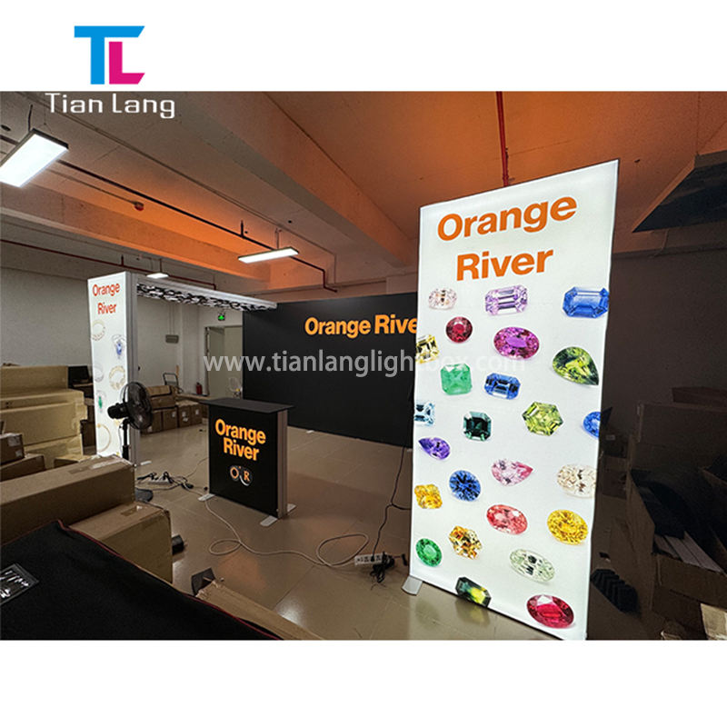TIANLANG กล่องไฟ LED สองด้านยืนแสดงสินค้าบูธจัดแสดงสินค้า