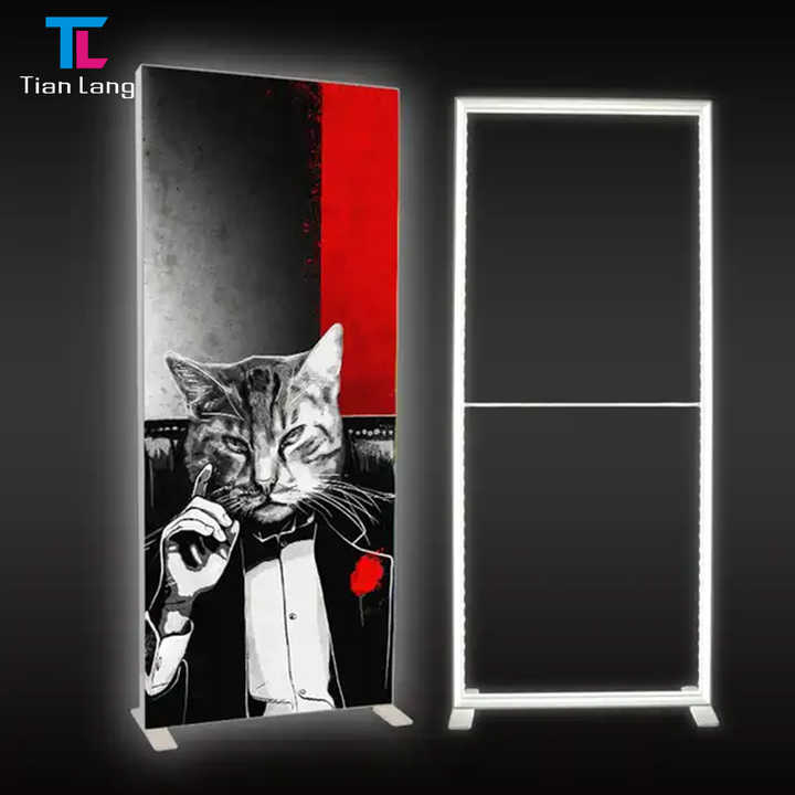TIANLANG ไฟ LED แสดงขอบแบบแบ็คไลท์ทรงสี่เหลี่ยมผืนผ้าอุปกรณ์แสดงสินค้าแบบตั้งพื้นพร้อมกล่องไฟผ้าความตึงเครียดสำหรับโฆษณา
