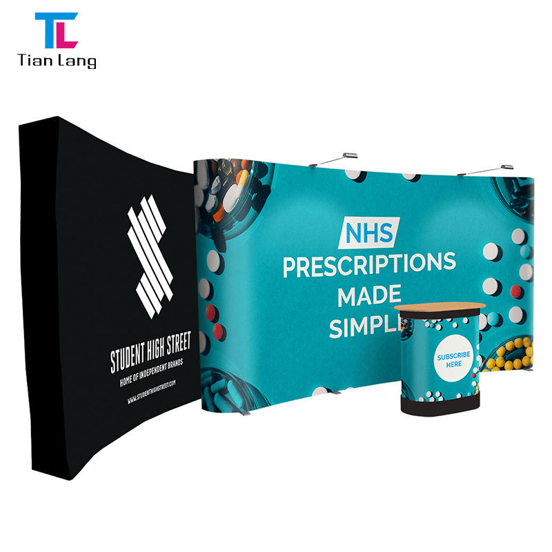 ฉากหลังผ้าสองด้าน Tianlang ขนาด 10 ฟุต พิมพ์ลายตามสั่ง ผนังผ้าสำหรับงานนิทรรศการ งานแต่งงาน โครงอะลูมิเนียมสำหรับจัดแสดง