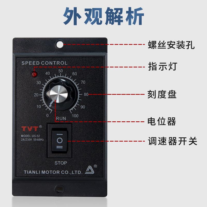 มอเตอร์เกียร์ขนาดเล็ก Tianli US 52 กำลังไฟ 6-400 วัตต์ พร้อมตัวควบคุมความเร็ว แบบเฟสเดียว 220 โวลต์ มีจำหน่ายสำหรับขายส่ง
