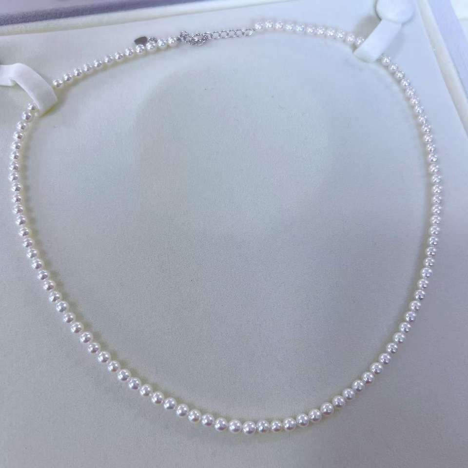 สร้อยคอไข่มุกน้ำจืด Tiannv ระดับ 3-4 มม. พร้อมจี้ทองคำ 18k รูปทรงเจ้าหญิง ขนาด 11-12 มม. พร้อมตัวล็อคแบบไข่มุก