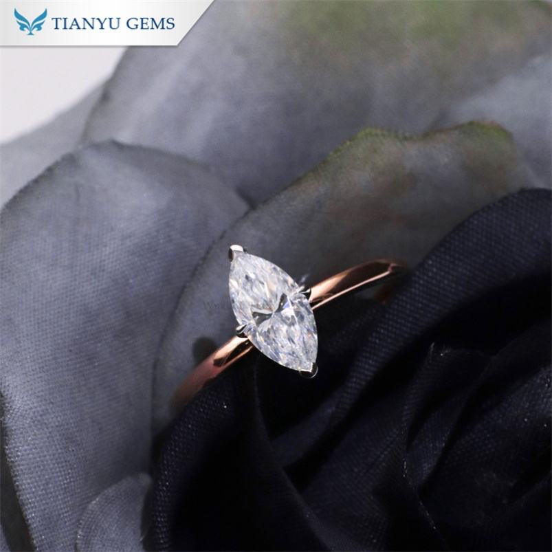 Tianyu 10K 14K 18K แหวนหมั้นทองแข็ง D VVS ใหม่ Marquise CUT Moissanite แหวนแต่งงานเพชรสำหรับผู้หญิงของขวัญ