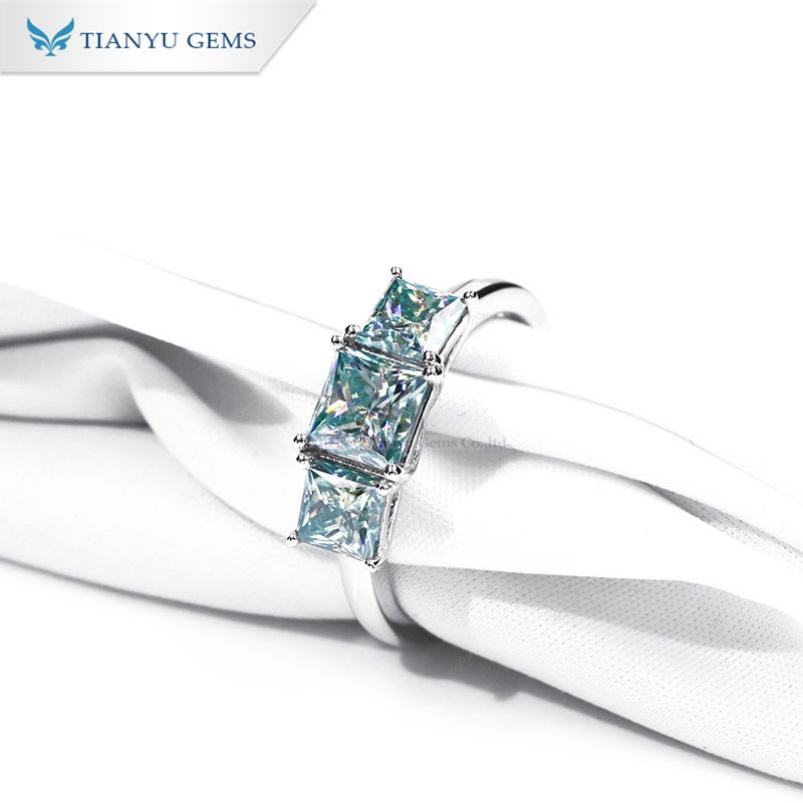 Tianyu เครื่องประดับเพชร14K 18K สีทองขาวบริสุทธิ์สีตัดแบบเจ้าหญิงโมอิสซาไนต์สำหรับผู้หญิง