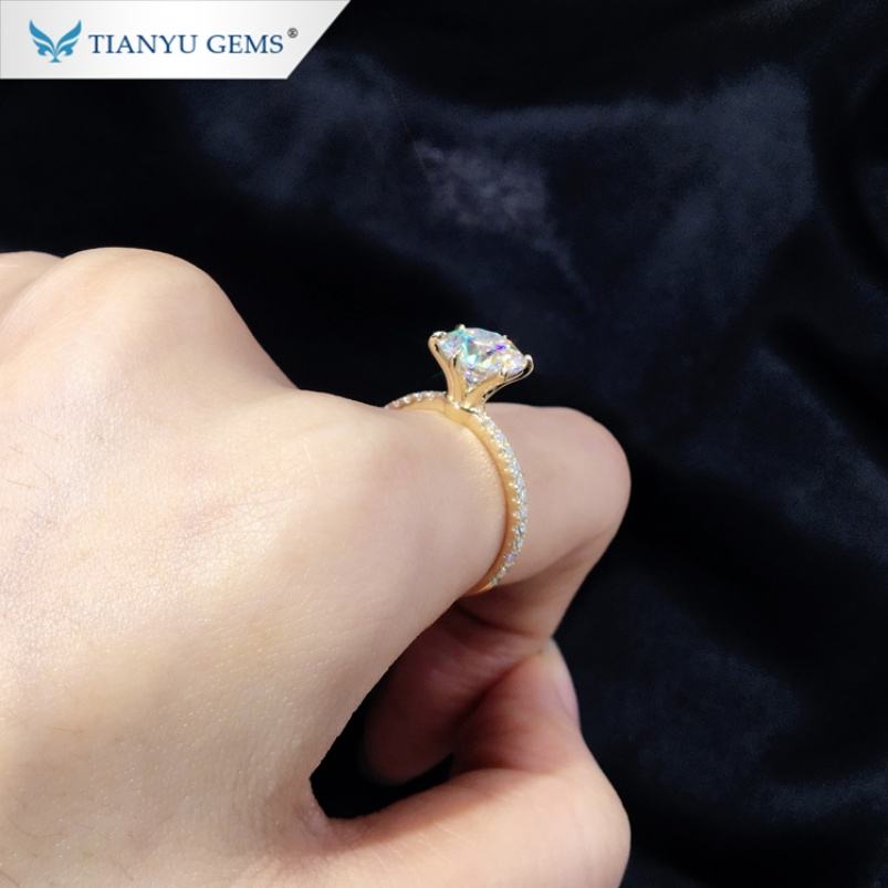 Tianyu แหวนทอง14K/18K แบบสั่งทำแหวนทอง8มม. รูปหัวใจและลูกศรตัดสำหรับแหวนหมั้นเพชรโมอิส