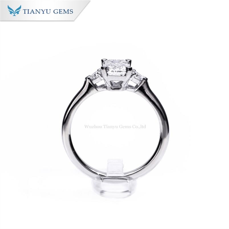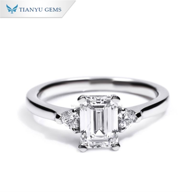Tianyu แหวนเพชร3เม็ด2ct พลอยพลอยมรกต18K 14K Pt950ทองคำขาวสำหรับผู้หญิง