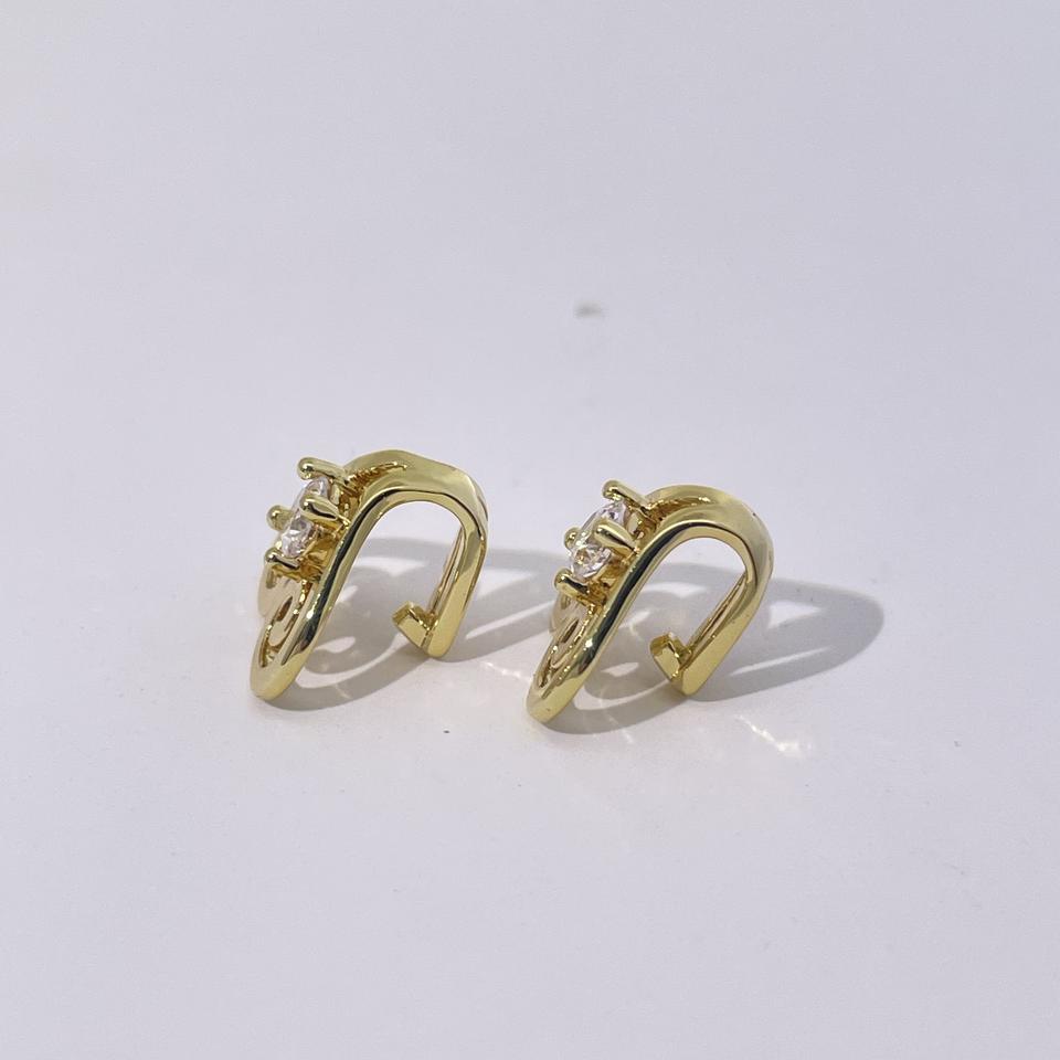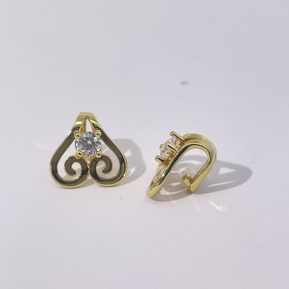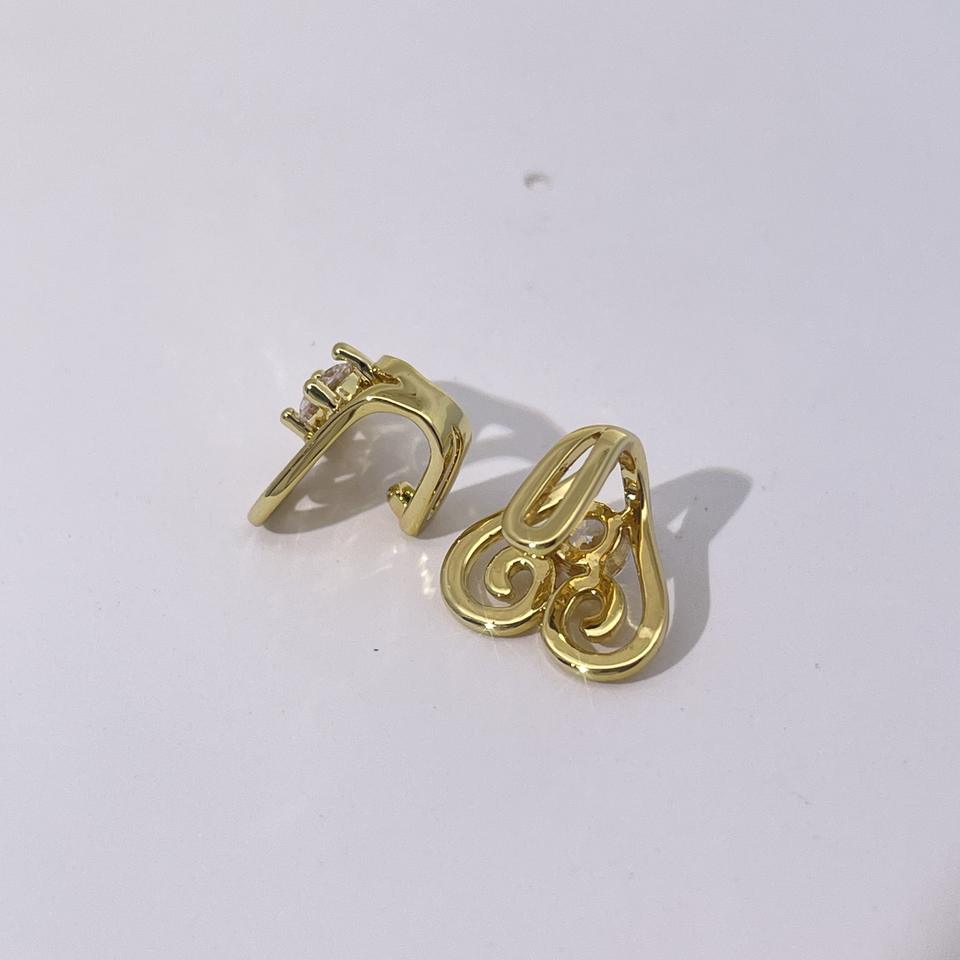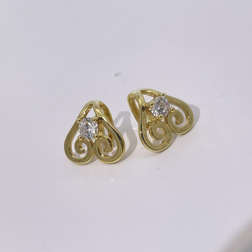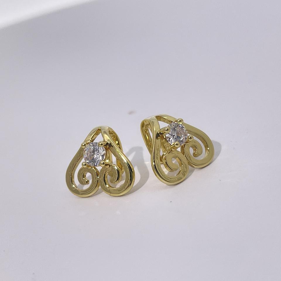 ต่างหูแบบเปิดรูปหัวใจลายเรขาคณิตสไตล์เรโทร ชุบทองบนทองเหลือง ประดับเพชรซิคอน สำหรับผู้หญิง จาก Tianyu Gems