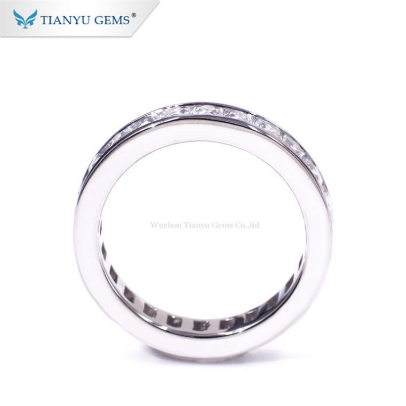 Tianyu Gems Channel Set French Cut 2.5mm Moissanite Band Ring D VVS1 Stone Women 18k 14k 10k White Gold Rings Wedding Jewelry