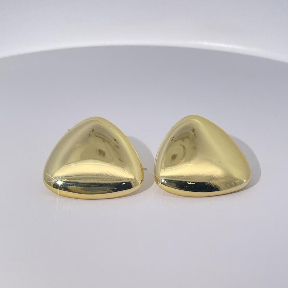 ต่างหูแบบติดหูทรงสามเหลี่ยมเรขาคณิตคลาสสิกจาก Tianyu Gems ทำจากทองเหลืองเคลือบทอง ไม่มีประดับเพชร สำหรับทุกเพศ