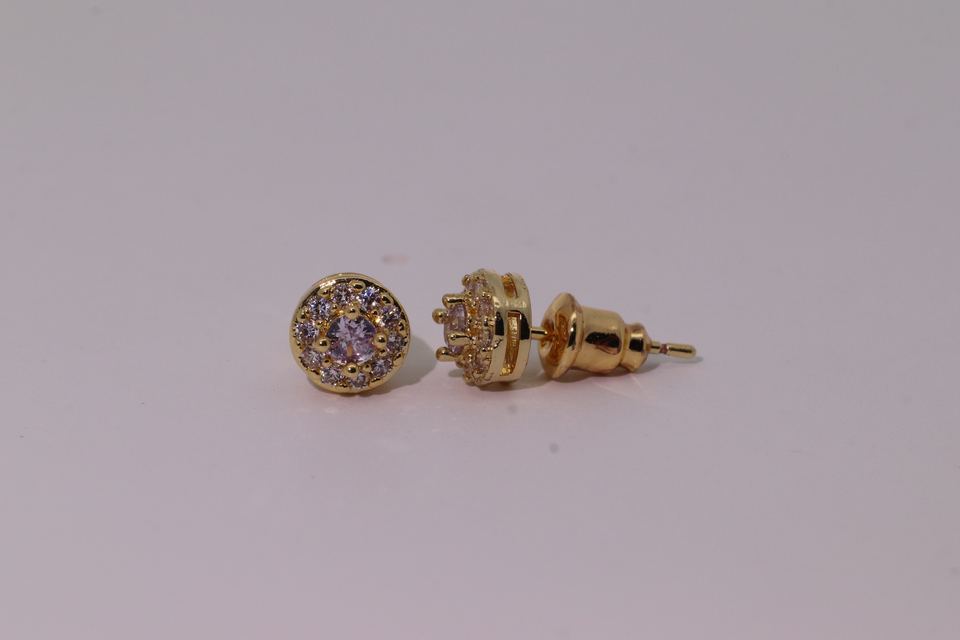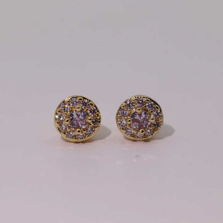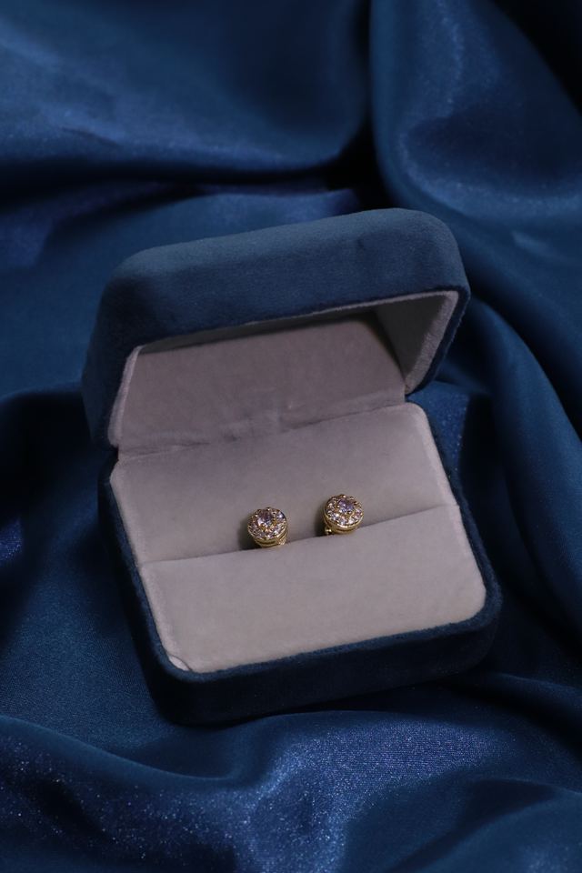 ต่างหูทรงกลมแบบคลาสสิกและมีสไตล์สำหรับผู้หญิงจาก Tianyu Gems ทำจากทองเหลืองชุบทอง ประดับด้วยเพชรคิวบิกเซอร์โคเนียสีขาว