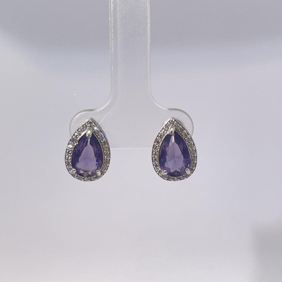 ต่างหูเพชรทรงหยดน้ำสีม่วงประดับทองเหลืองชุบทองคำขาว ดีไซน์คลาสสิกจากเทียนหยู เจมส์ สำหรับผู้หญิง