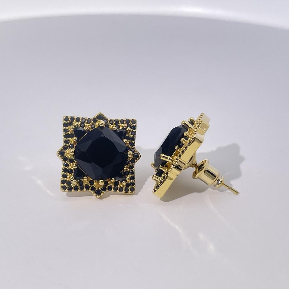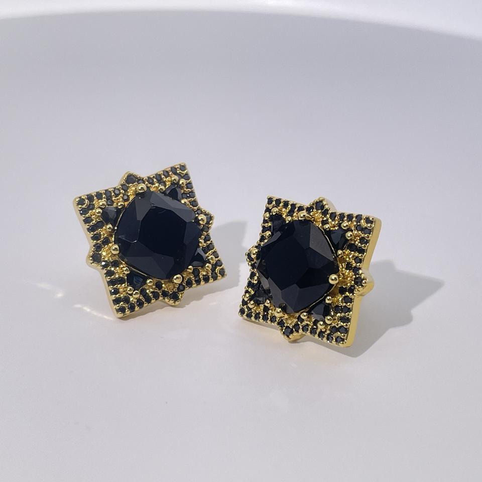 ต่างหูแบบติดหูทรงเรขาคณิต ชุบทองเหลือง ประดับเพชรซิคอนทรงกลมสีดำ ดีไซน์คลาสสิก หรูหรา สง่างาม สำหรับผู้หญิง จาก Tianyu Gems