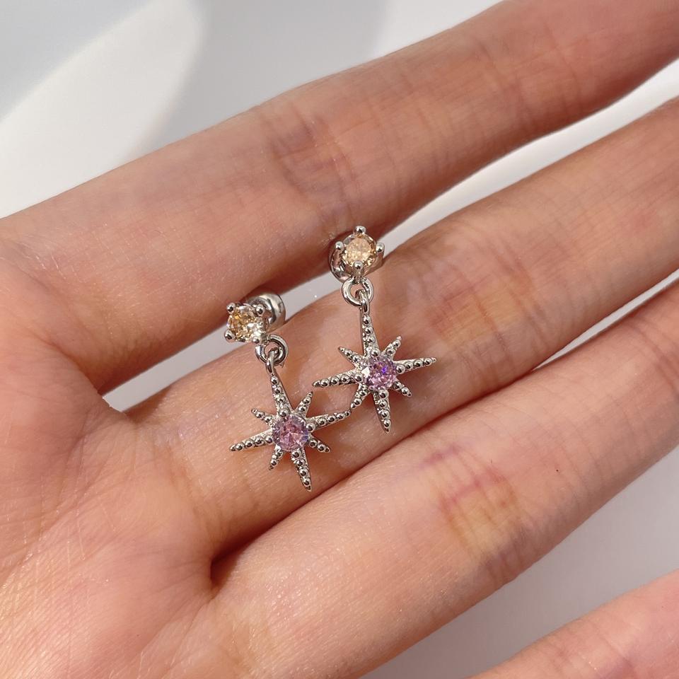 ต่างหูจี้รูปดาวประดับเพชรคิวบิกเซอร์โคเนียทรงกลมสีชมพู ชุบทองเหลือง ดีไซน์คลาสสิกทันสมัยสำหรับผู้หญิง จากเทียนหยู เจ็มส์