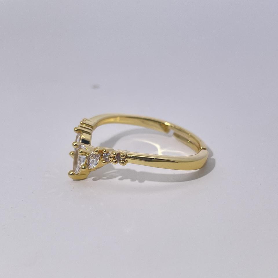 แหวนทองแดงชุบทองรูปตัววี ประดับเพชรซิคอน ดีไซน์หรูหราเบาๆ ปรับขนาดได้ สำหรับผู้หญิง