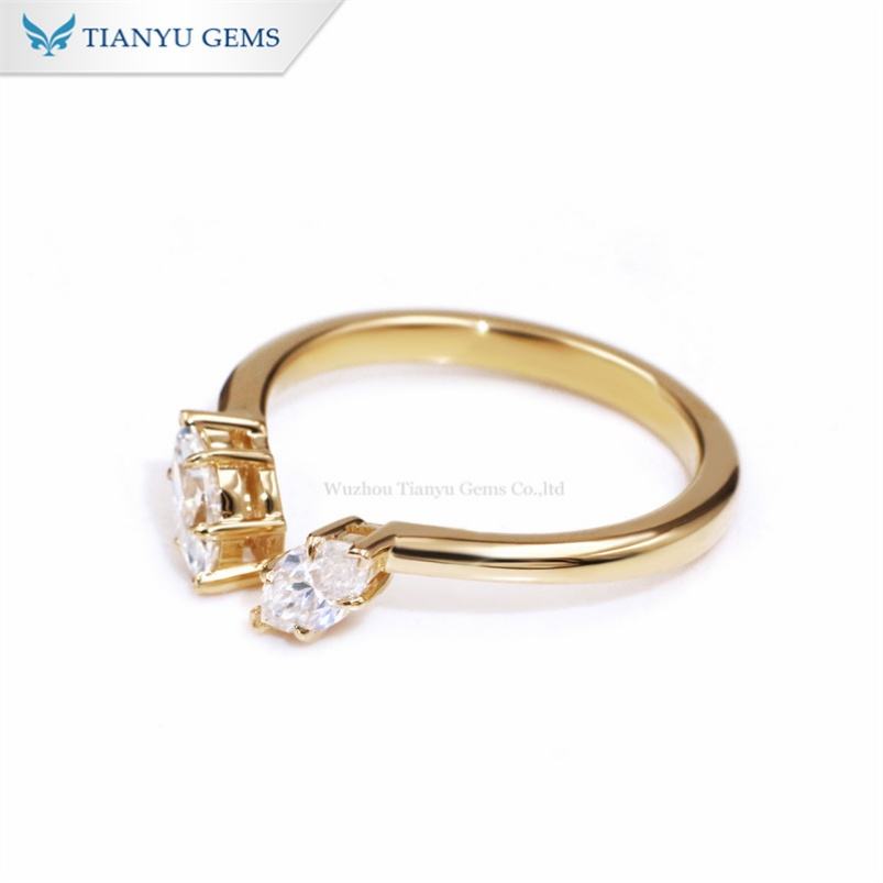 Tianyu อัญมณีอัญมณีแบบกำหนดเอง3*6มม. 0.3ct เพชร Moissanite Def VVS1 18K สีเหลืองทองเปิดแหวนสำหรับผู้หญิงหมั้น