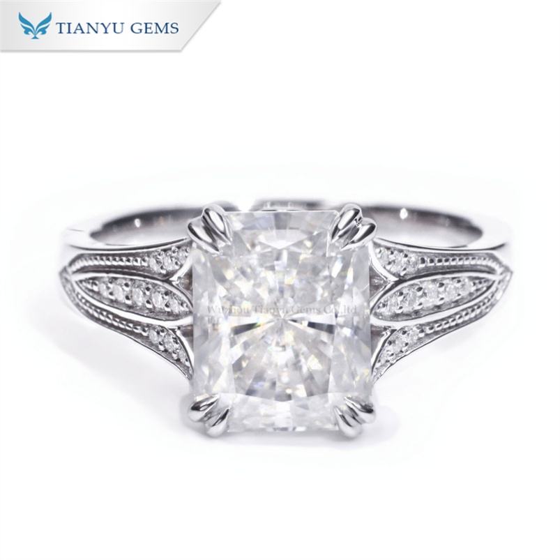 Tianyu Gems Customized 10k White Gold Radiant Cut 4ct Moissanite Engagement Ring Diamond