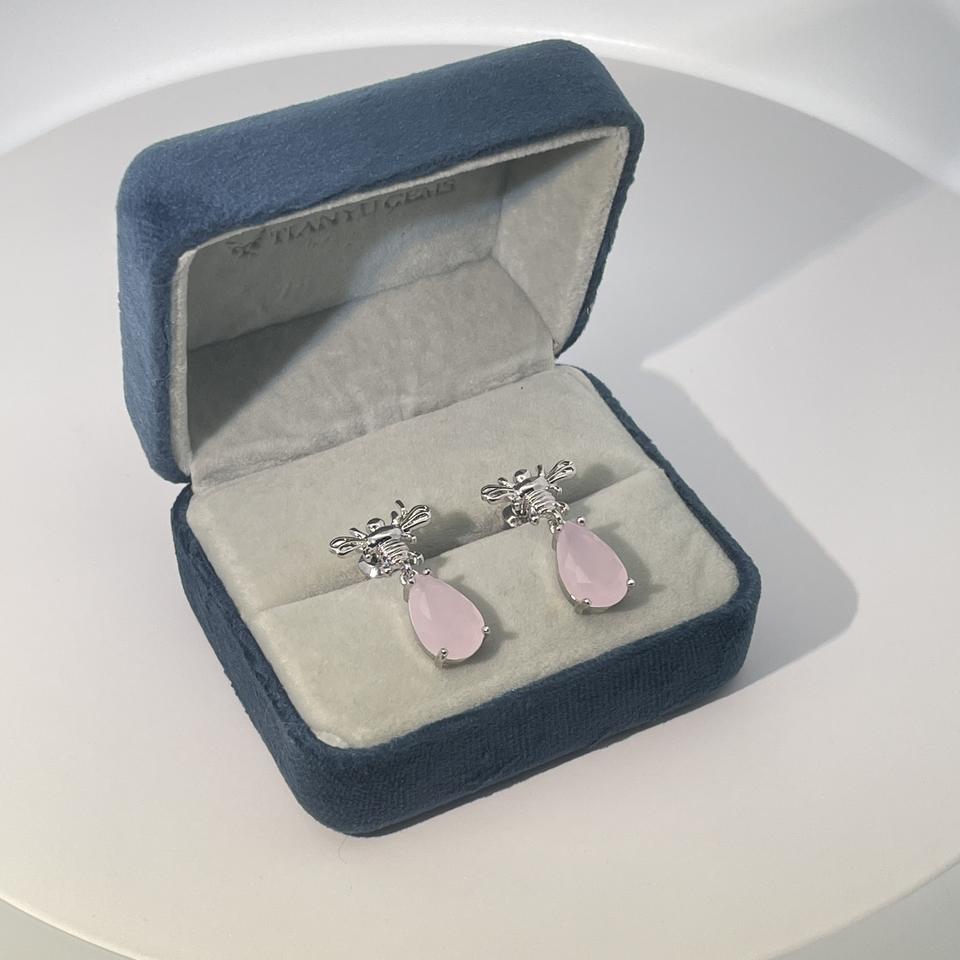 จี้รูปทรงลูกแพร์ประดับเพทายสีชมพูชุบทองเหลืองสำหรับผู้หญิง ดีไซน์น่ารักจาก Tianyu Gems พร้อมต่างหูแบบคลาสสิกสำหรับผู้หญิง