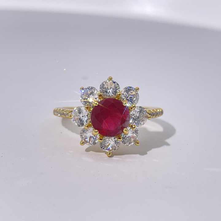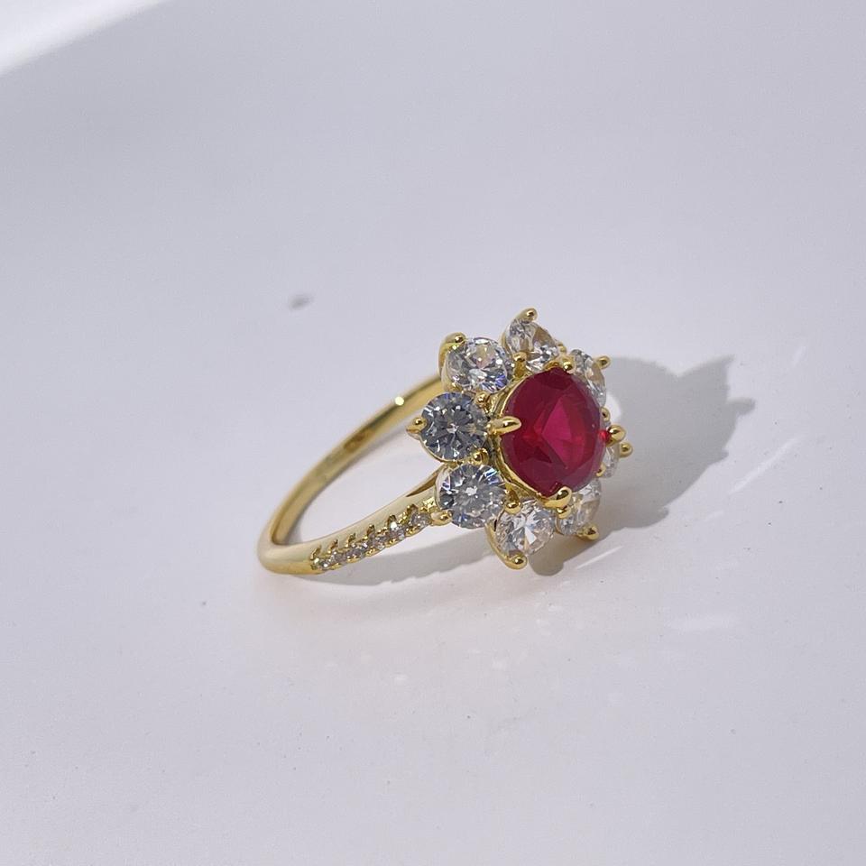 แหวนทองแดงรูปดอกไม้ประดับเพชรซิคอนสีแดงและสีขาวจากเทียนหยู เจมส์ เหมาะสำหรับสวมใส่ในชีวิตประจำวันหรือเป็นของขวัญ