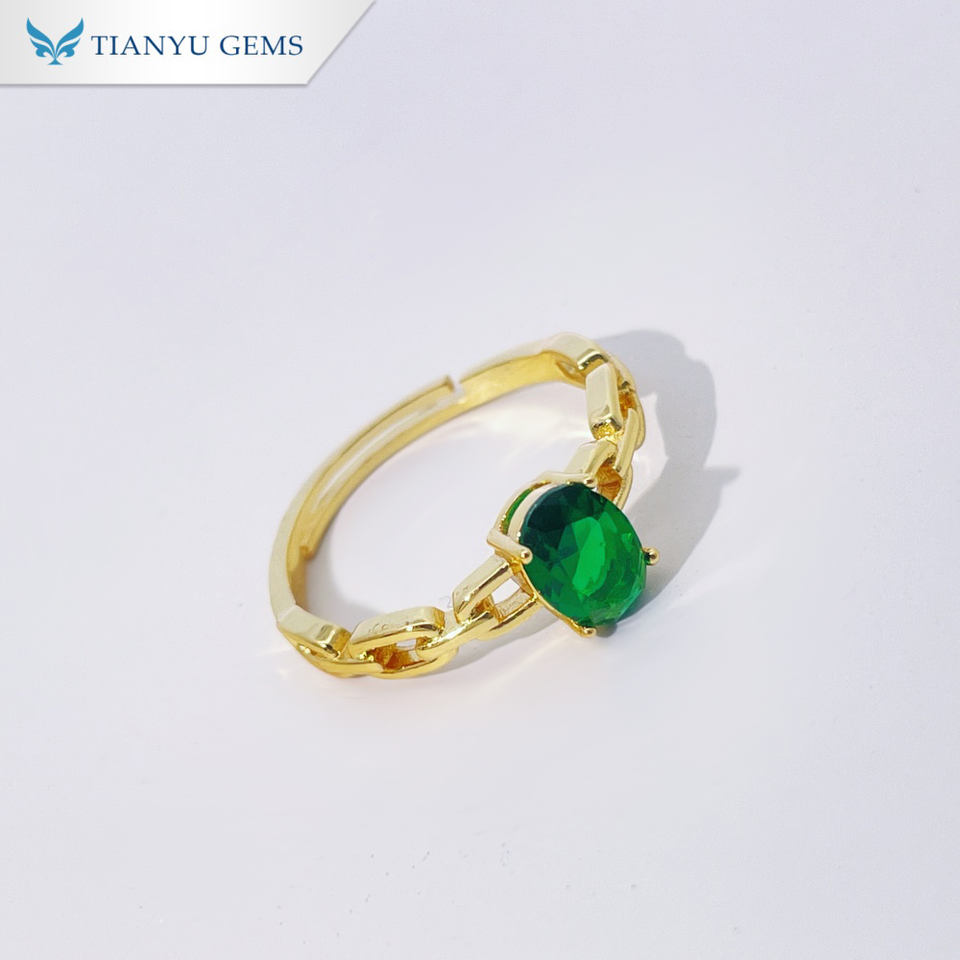 แหวนทองแดงประดับเพทายสีเขียวสไตล์แฟชั่นจากเทียนหยู เจ็มส์ แบบปรับขนาดได้ ชุบทอง เหมาะสำหรับสวมใส่ในชีวิตประจำวัน