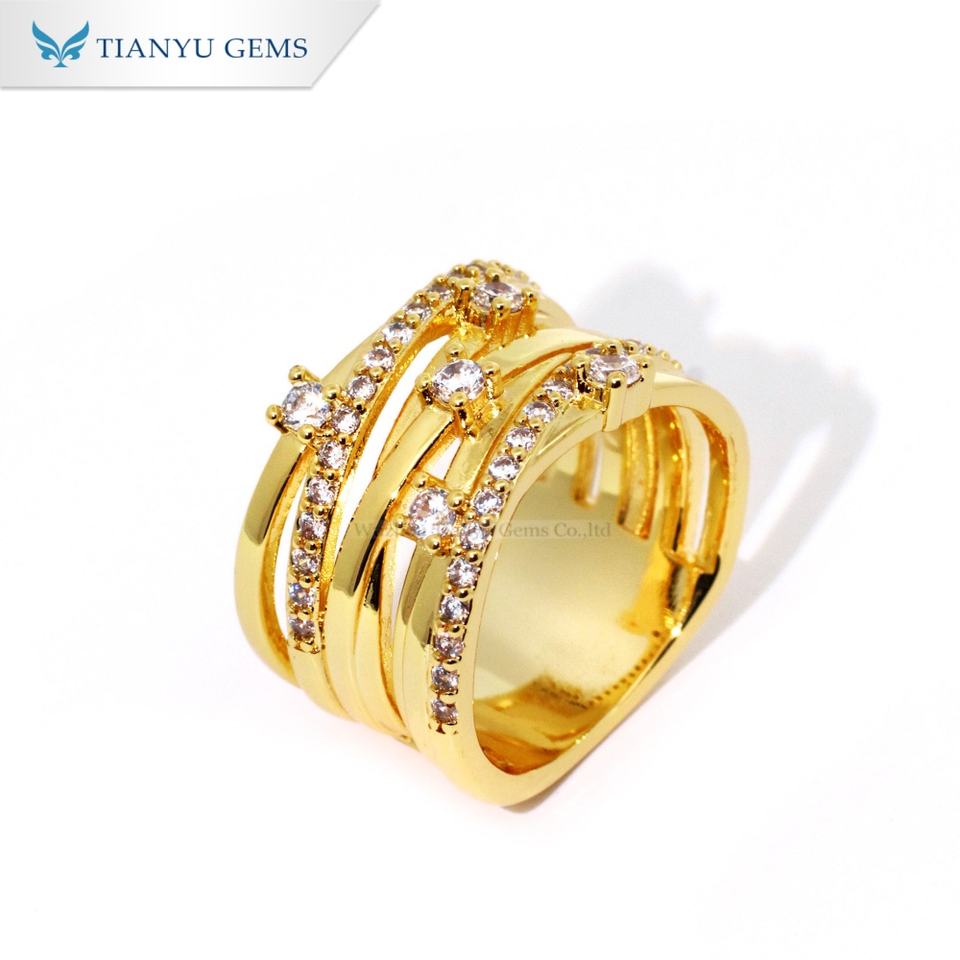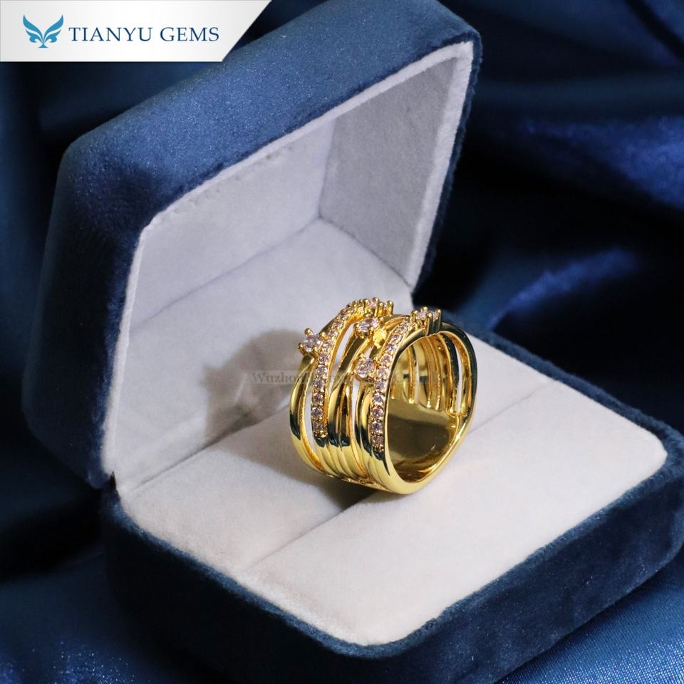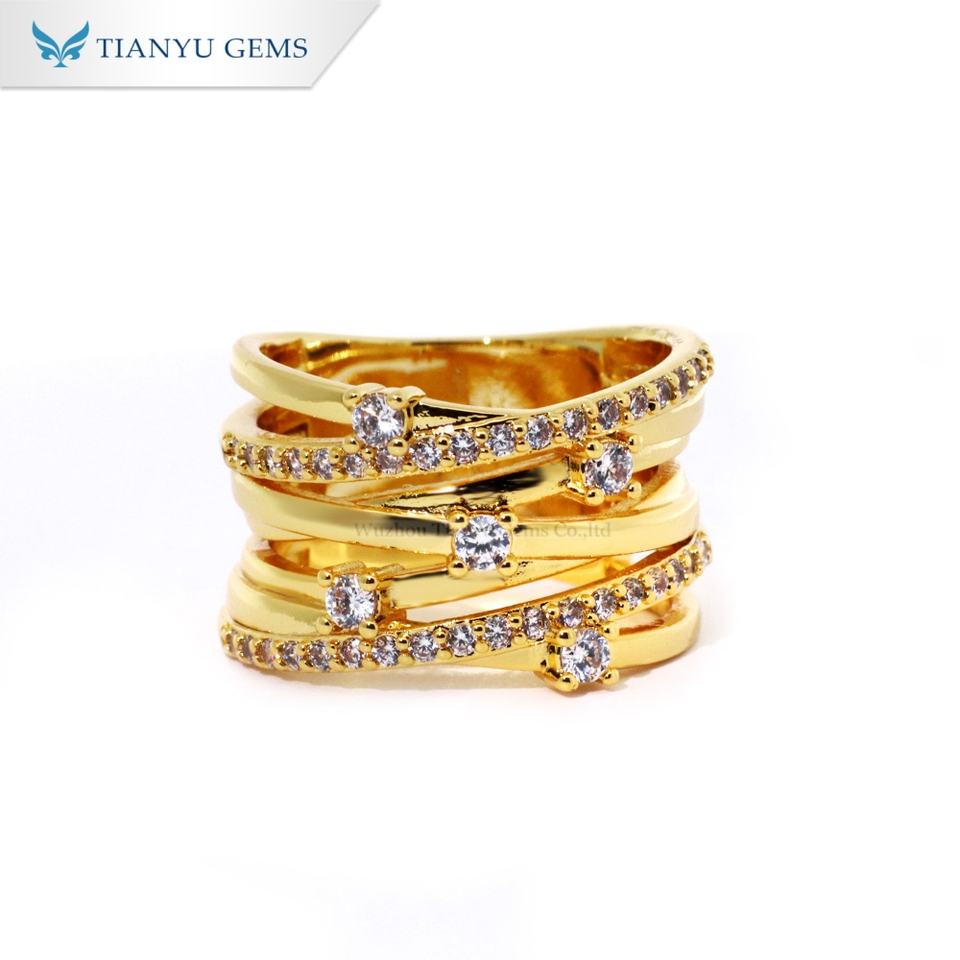 แหวนทองแดงแฟชั่น Tianyu Gems ประดับเพชรซิคอน ดีไซน์บิดเกลียวหลายชั้น เครื่องประดับแฟชั่นสำหรับผู้หญิง