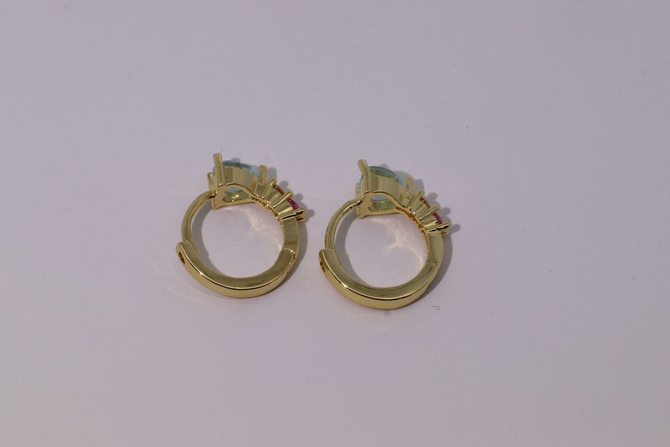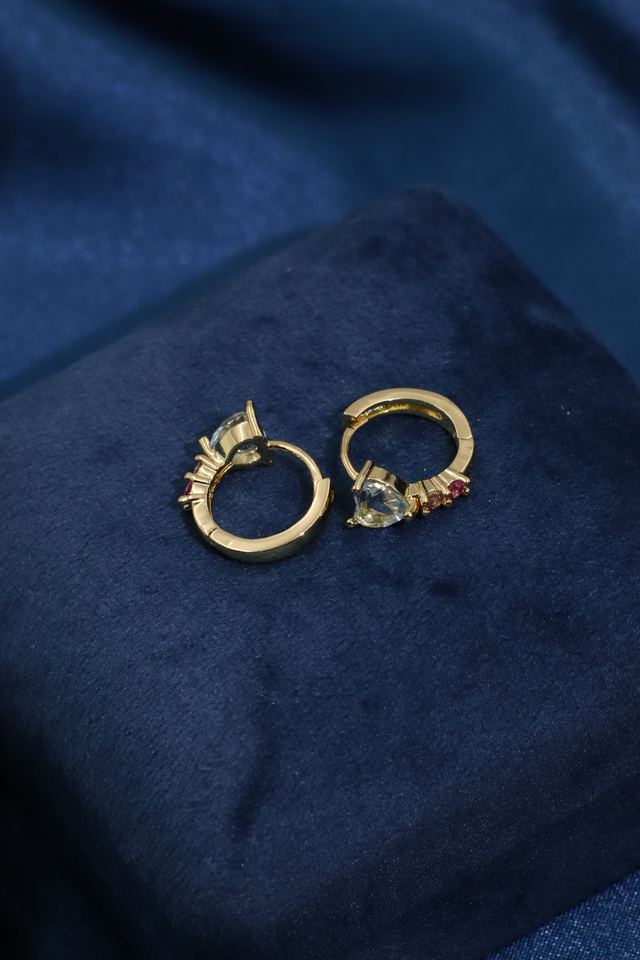 ต่างหูห่วงทรงหัวใจประดับเพชรคิวบิกเซอร์โคเนียและคอรันดัมสีแดง ดีไซน์คลาสสิก สง่างาม ชุบทองบนทองเหลือง จากเทียนหยู เจ็มส์