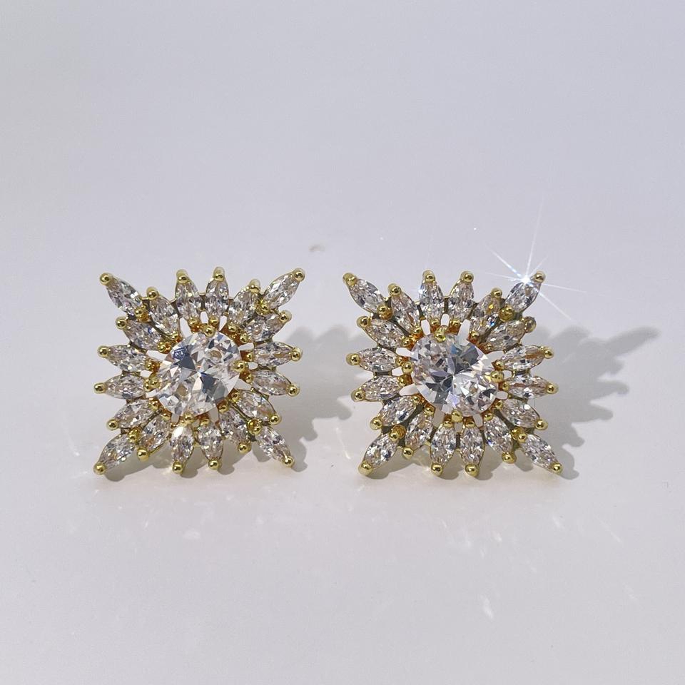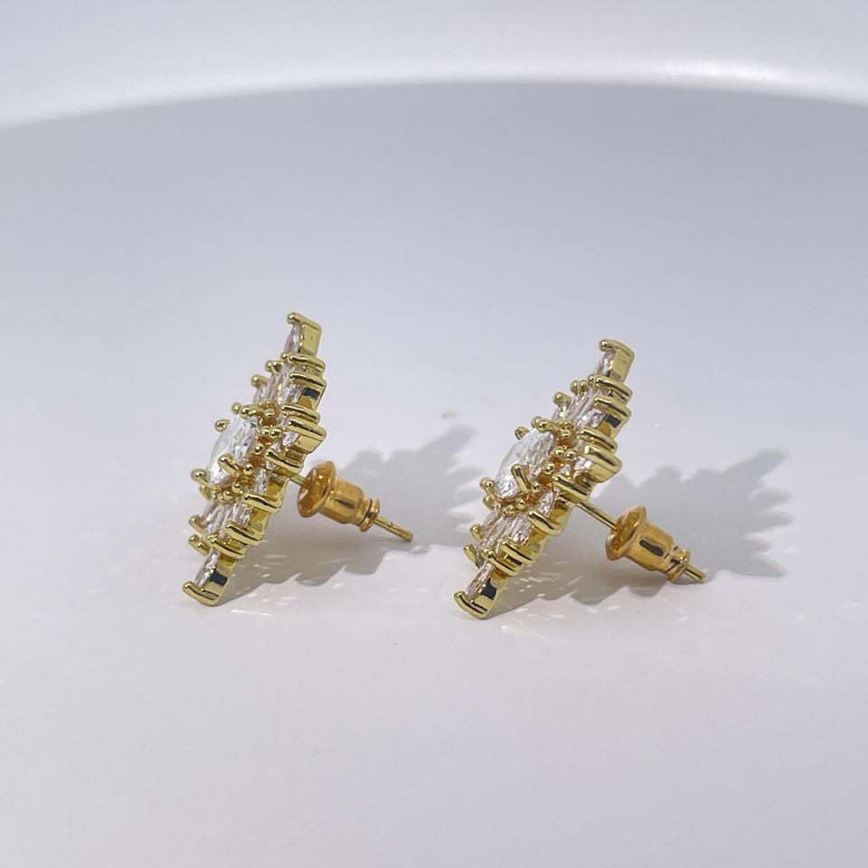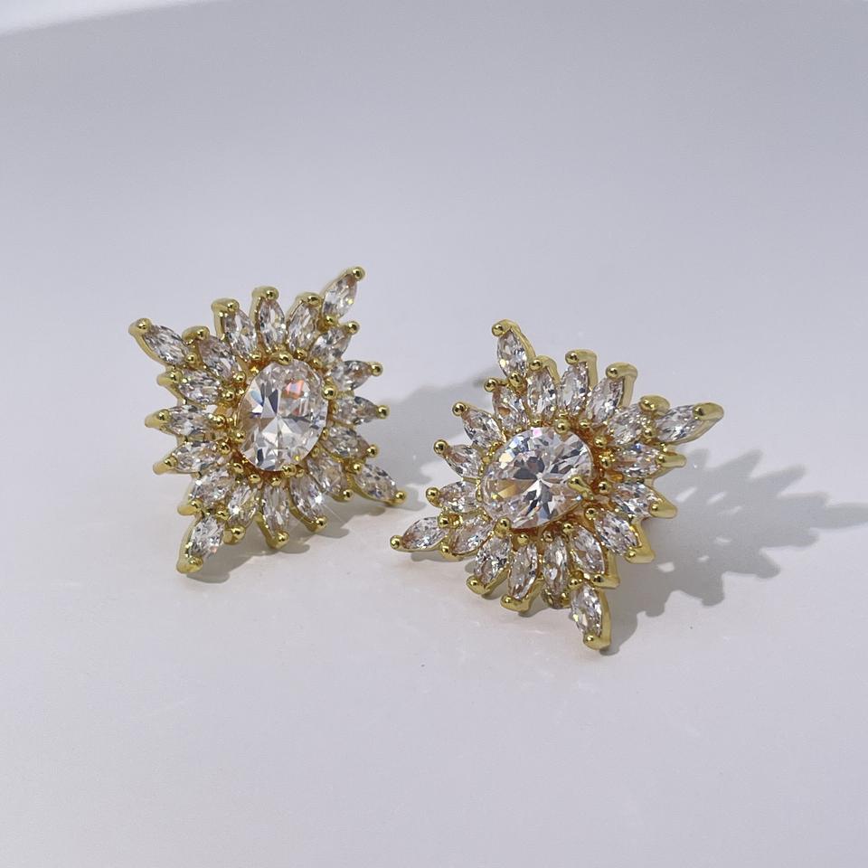 ต่างหูแบบติดหูรูปเกล็ดหิมะสำหรับผู้หญิง ทำจากทองเหลืองชุบทอง หรูหรา คลาสสิก และสง่างาม จาก Tianyu Gems