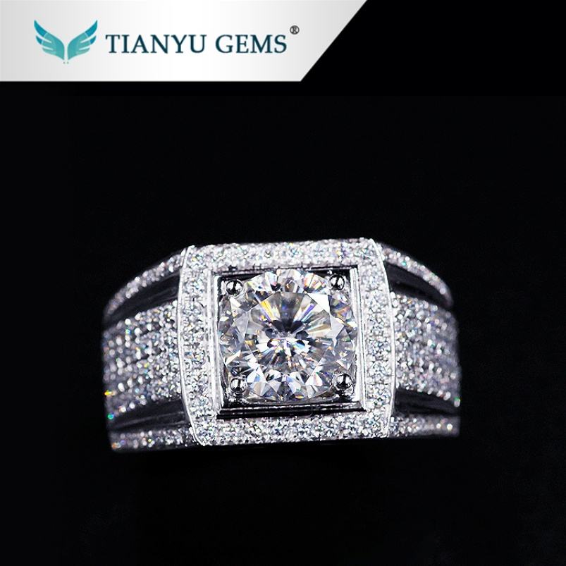 Tianyu แหวนแต่งงานผู้ชายประดับเพชรโมอิสกลมเพชร18K 14k ประดับ VVS1แท้