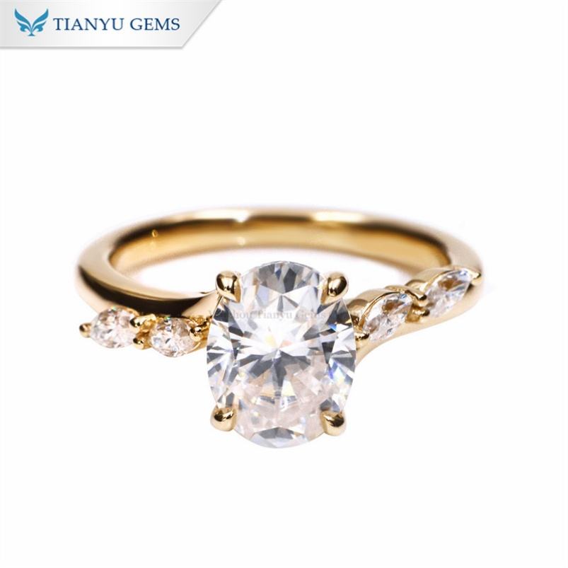 Tianyu Gems Oval Hearts and Arrows 7*9mm 2carat D VVS1 Moissanite Stone 10k 14k 18k Solid Yellow Gold Engagement Rings