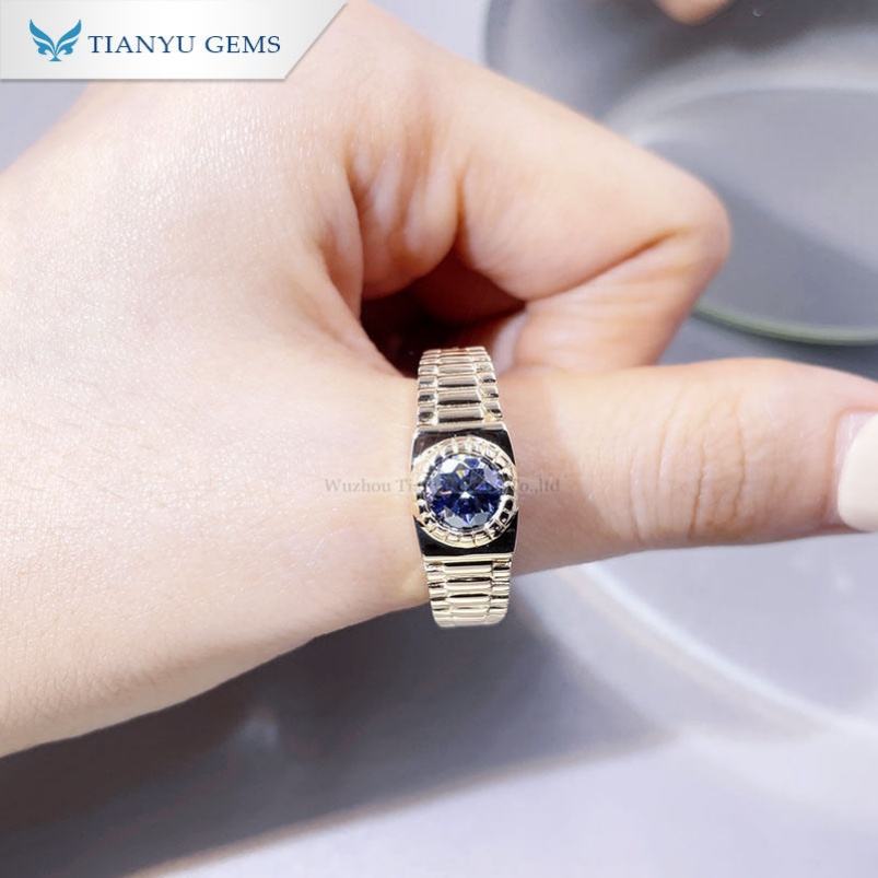 Tianyu แหวนทองเพชรโมอิสสีฟ้าดีไซน์ยอดนิยมสำหรับผู้ชาย
