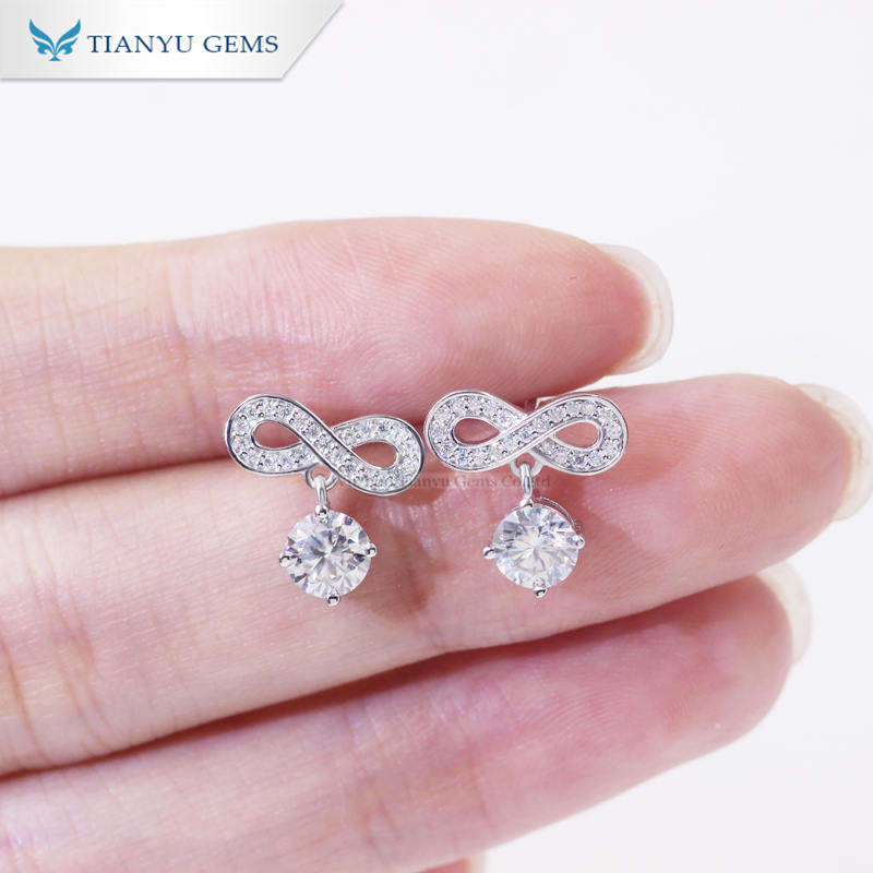 Tianyu Gems Silver-plated Gold Classic, Stylish, Bowknot Four-prong Setting round Moissanite Stud Earrings.