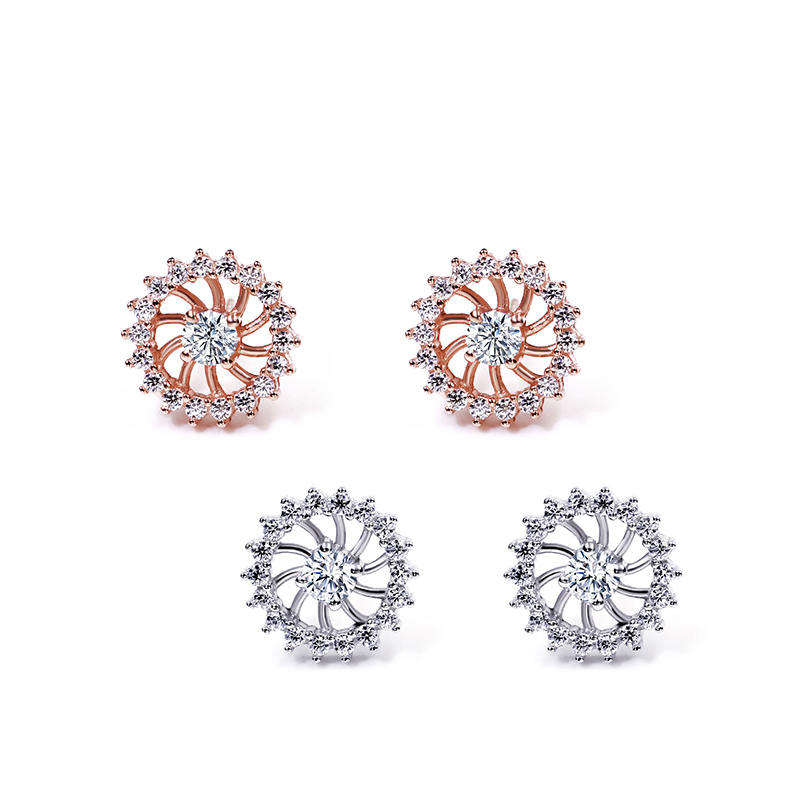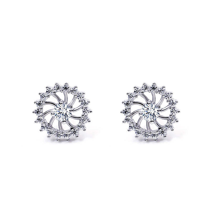 ต่างหูเพชรโมอิสซาไนต์ทรงวงกลมลายดอกไม้แบบโปร่ง ดีไซน์คลาสสิก ทันสมัย และหรูหรา ชุบทองคำขาว จากเทียนหยู เจ็มส์