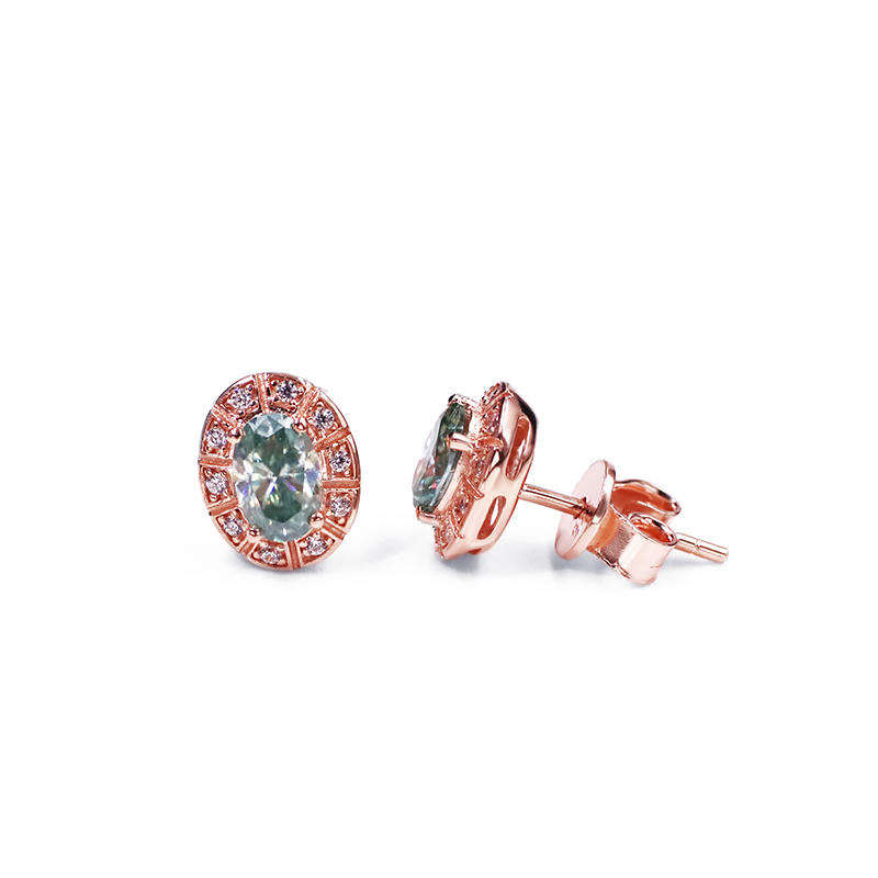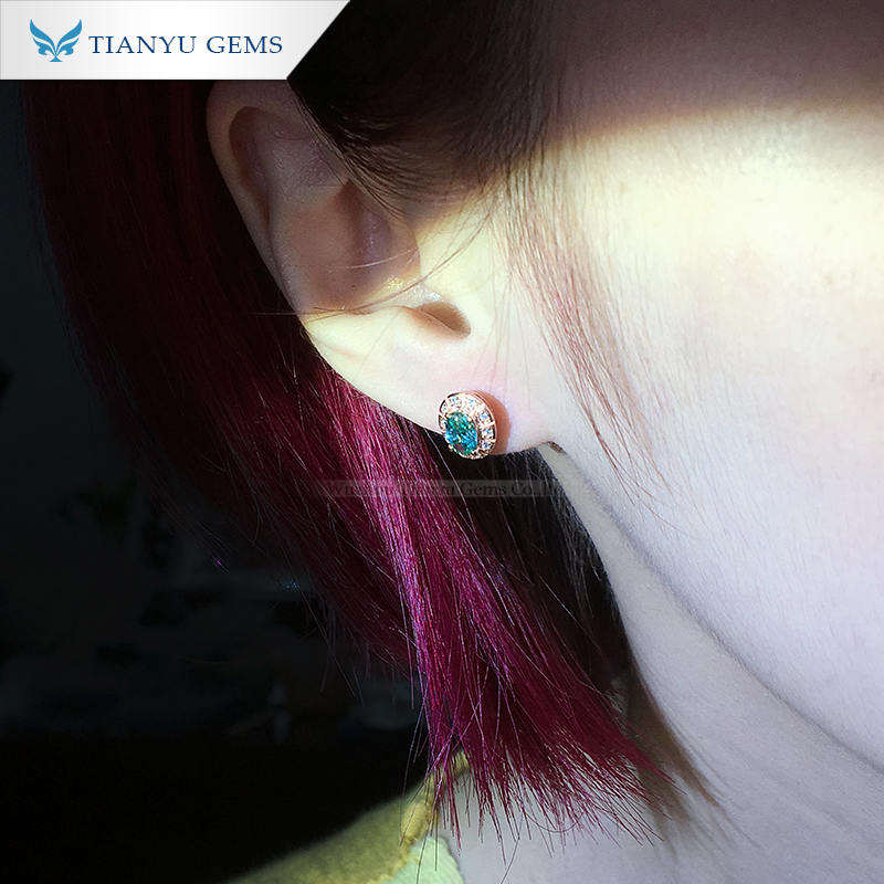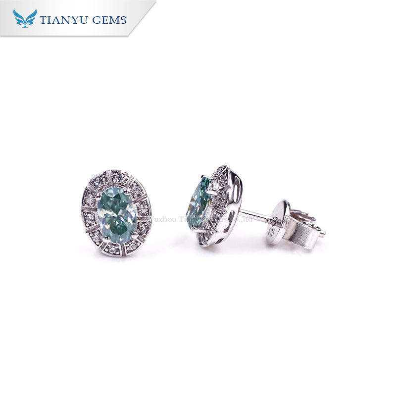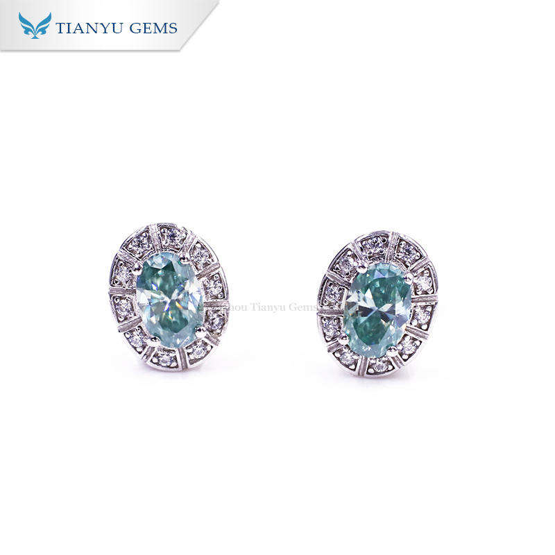 ต่างหูเพชรโมอิสซาไนต์ทรงรีสีฟ้าอมเขียว ดีไซน์คลาสสิก ทันสมัย และหรูหรา ชุบทองคำขาว จากเทียนหยู เจ็มส์