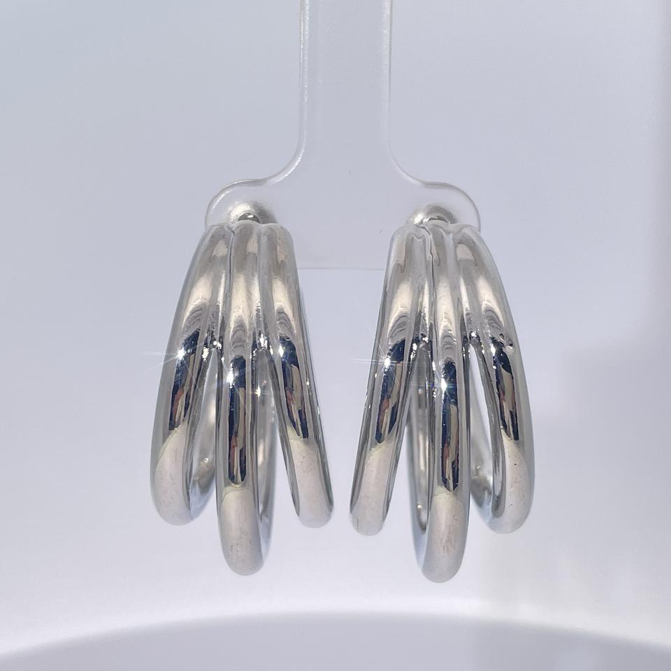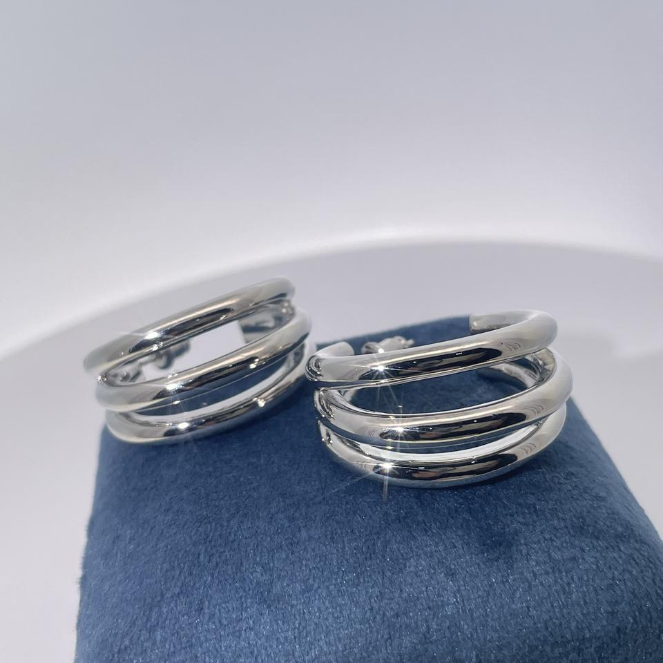 ต่างหูแบบหนีบสามชั้นทรงกรงเรียบง่ายสไตล์คลาสสิกจาก Tianyu Gems ดีไซน์เรขาคณิต ชุบทองบนทองเหลือง ไม่มีพลอย