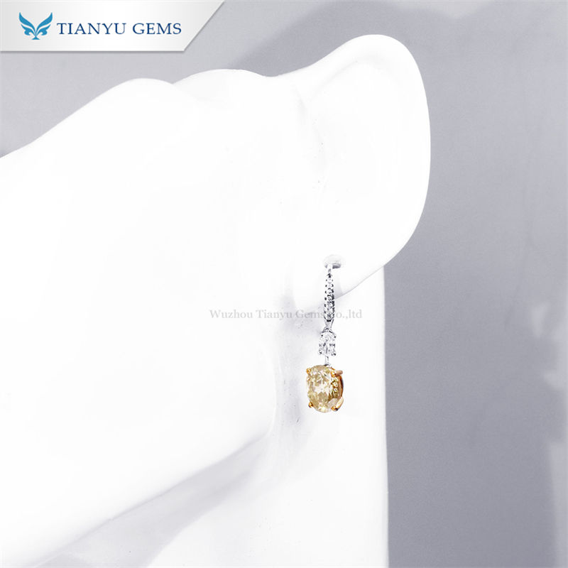 ต่างหูจี้เพชรโมอิสซาไนต์ทรงรี สไตล์คลาสสิก หรูหราเบาๆ ชุบทองคำ 18k บนเงินแท้จากเทียนหยู เจ็มส์