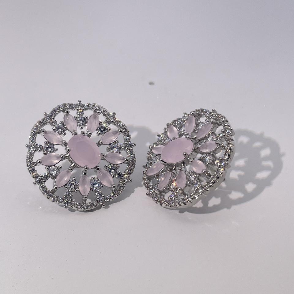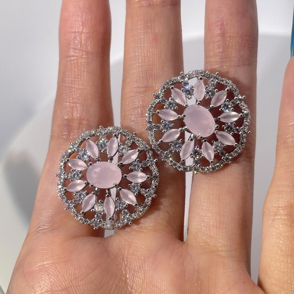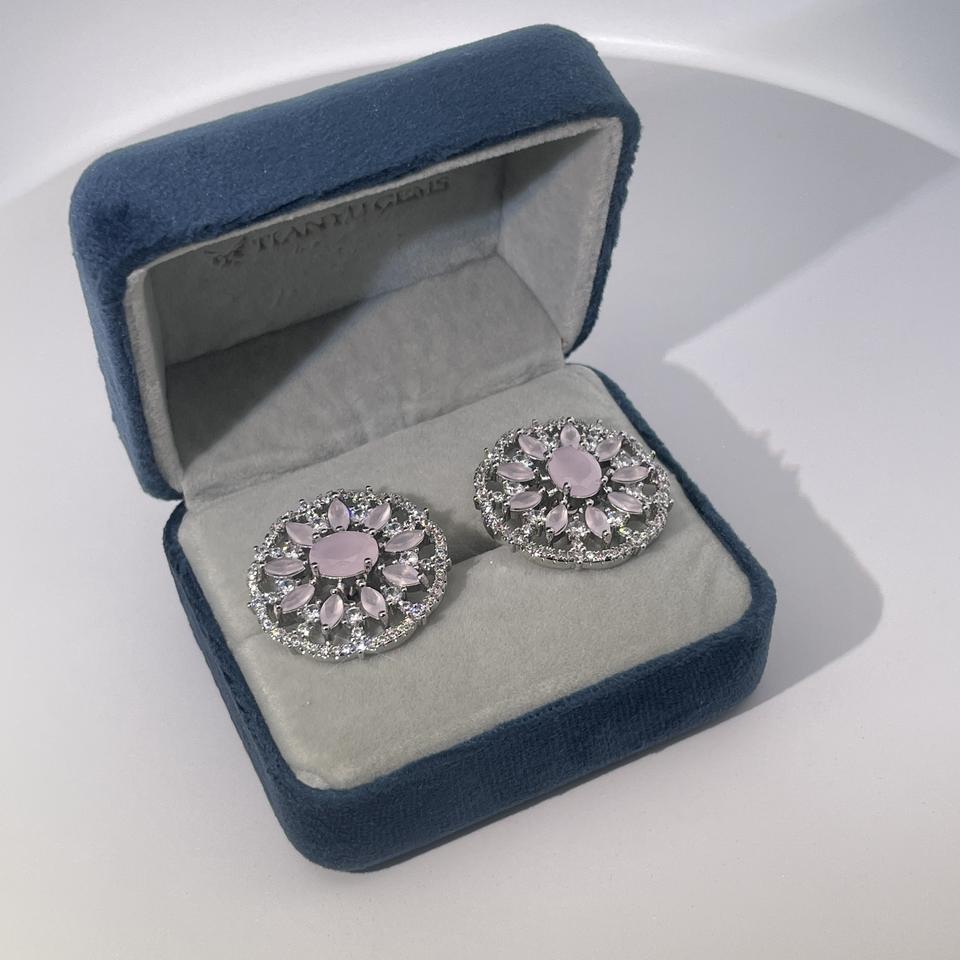 ต่างหูแบบติดหู ดีไซน์หรูหราทันสมัยจาก Tianyu Gems ทำจากทองเหลืองชุบทอง ประดับด้วยเพทายรูปไข่สีชมพูทรงลูกแพร์ ดีไซน์ดอกไม้สุดหรู