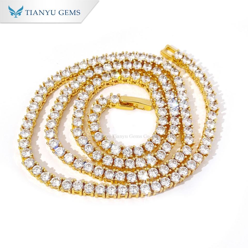 สร้อยคอเทนนิส Tianyu Gems ชุบทอง ประดับด้วยเพชรคิวบิกเซอร์โคเนียเม็ดใหญ่ เครื่องประดับฮิปฮอปสุดเทรนดี้