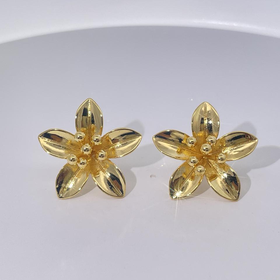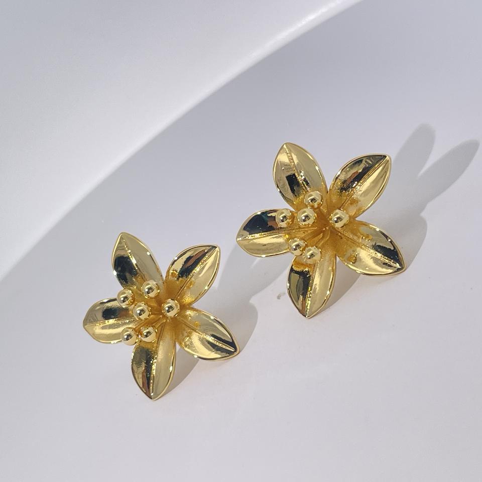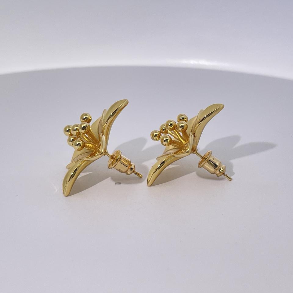 ต่างหูแบบติดหูรูปดอกลิลลี่สามมิติ สไตล์ฝรั่งเศส หรูหรา คลาสสิก จาก Tianyu Gems ผลิตจากทองเหลืองชุบทอง สำหรับผู้หญิง