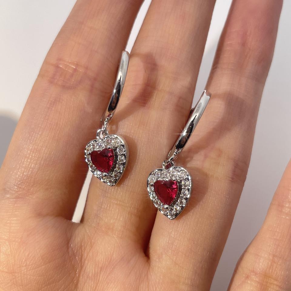 ต่างหูจี้รูปหัวใจสีแดง ชุบทองเหลือง ประดับเพชรคิวบิกเซอร์โคเนียทรงหัวใจ ดีไซน์คลาสสิก ทันสมัย หรูหราเบาๆ สำหรับผู้หญิง