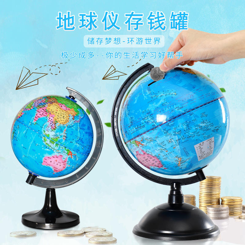 กระปุกออมสินทรงโลก Tianyu ขนาด 14.2 ซม. ของเล่นเสริมการเรียนรู้ภูมิศาสตร์สำหรับนักเรียน ใช้เก็บเหรียญออมทรัพย์ อุปกรณ์การศึกษาอเนกประสงค์
