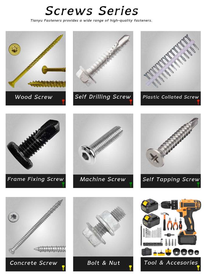 สกรูหัวหกเหลี่ยมชุบสังกะสีแบบจุ่มร้อน Tianyu ความแข็งแรงสูง สำหรับงานโครงสร้างไม้และหลังคา