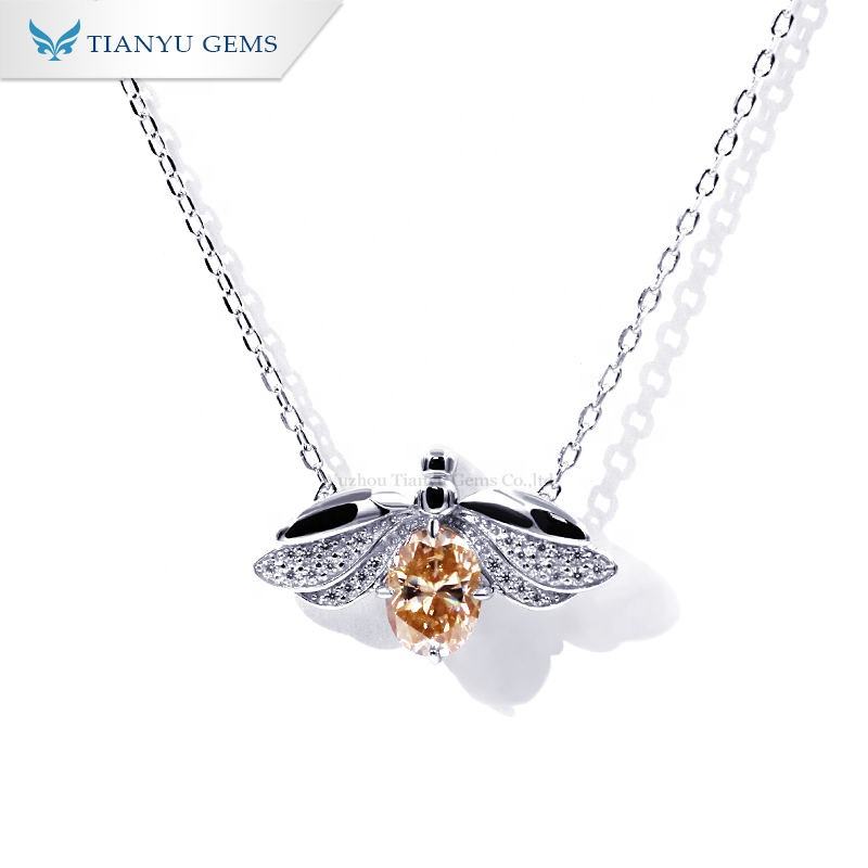 จี้สร้อยคอพลอยมอยส์ซาไนต์สีรูปแมลง ของ Tianyu ชิ้นงานเฉพาะกลุ่มและประณีต เหมาะสำหรับผู้หญิง
