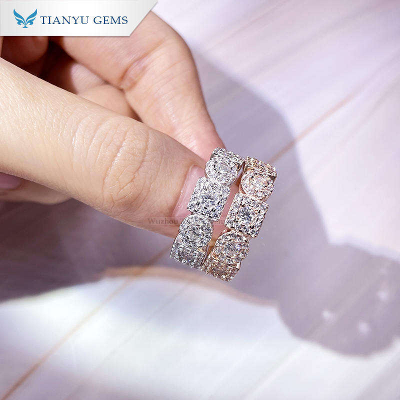 แหวนเงินแท้ Tianyu S925 ประดับโมอิสซาไนต์ 1 กะรัต - ชุบแพลตตินัมและโรสโกลด์ สไตล์ Eternal Cluster เหมาะสำหรับเป็นของขวัญหมั้น