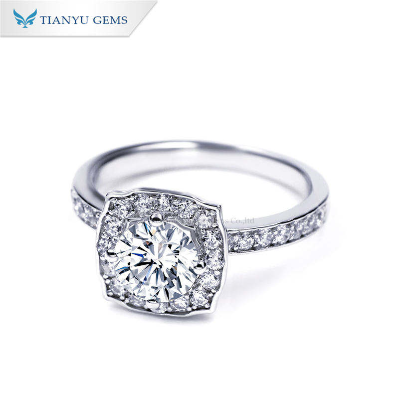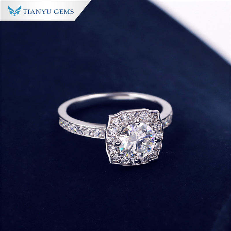 แหวนเงินแท้ S925 ประดับโมอิสซาไนต์ Tianyu 1 กะรัต 0.5 กะรัต ดีไซน์รัศมีเปล่งประกาย สำหรับใส่ในชีวิตประจำวันและงานปาร์ตี้