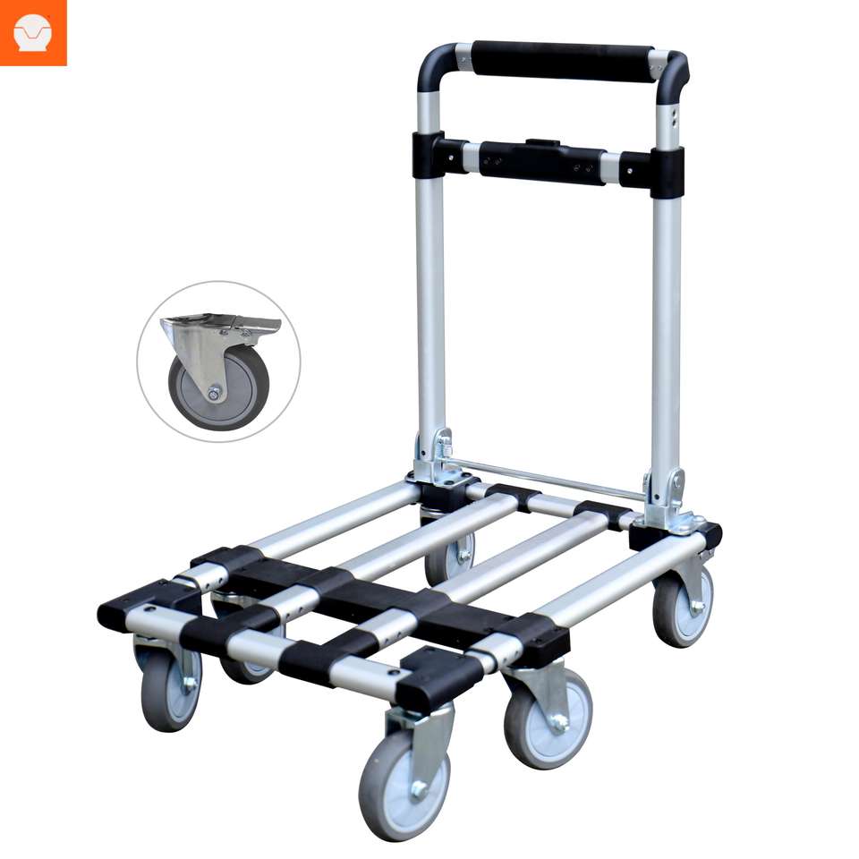 รถเข็นเก็บของแบบพับได้ 6 ล้อ Tianyu T601A ทนทาน โครงสร้างอลูมิเนียม ที่วางของทำจากพลาสติก PP รับน้ำหนักได้ 200 กก. สำหรับงานอุตสาหกรรมและการช็อปปิ้ง
