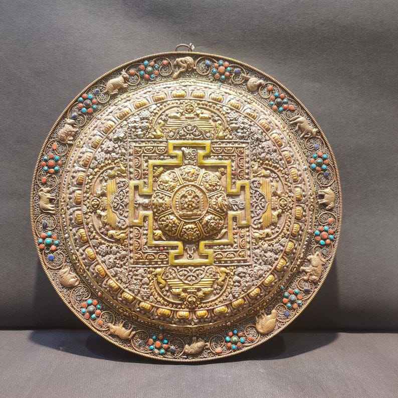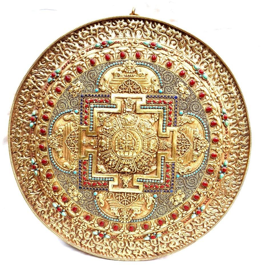 แมนดาลาทองแดงทิเบตประดับด้วยหินสีทอง